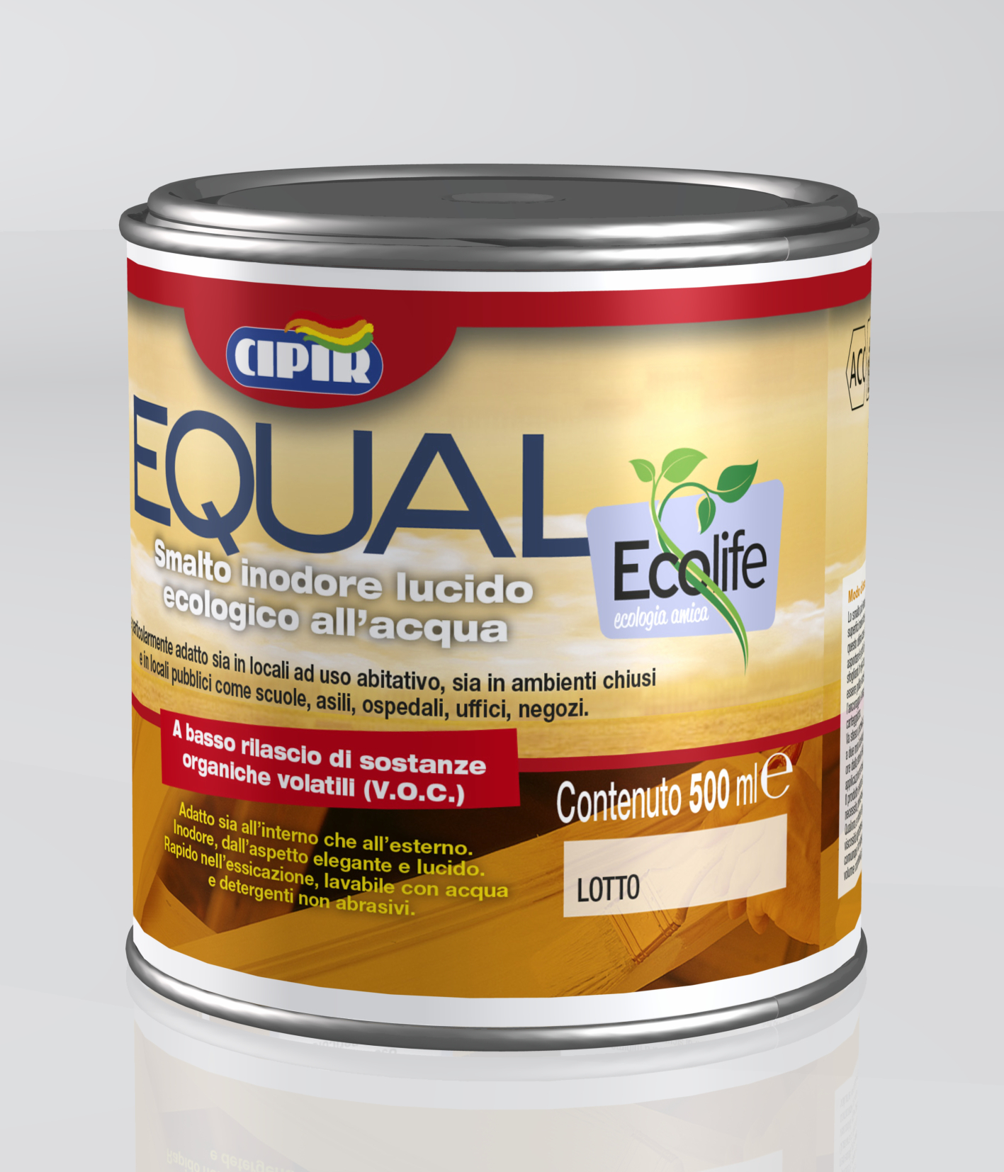 Smalto all'acqua lavabile, a base di resine acriliche, pigmenti ed additivi ecologici, praticamente inodore, può essere impiegato anche in ambienti chiusi e poco aereati senza causare la formazione di odori e vapori nocivi o fastidiosi.