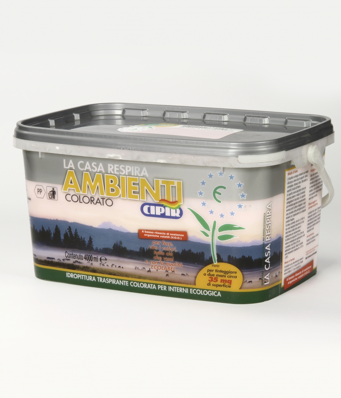 CICLO: Su muri nuovi: assicurarsi che il supporto sia pulito e perfettamente asciutto e quindi procedere con una prima passata di fissativo "FIXCIPIR". Trascorse almeno 12÷18 ore si potrà applicare la prima mano di prodotto. Dopo altre 24 ore si potrà completare con l'applicazione della seconda mano di Ambienti.