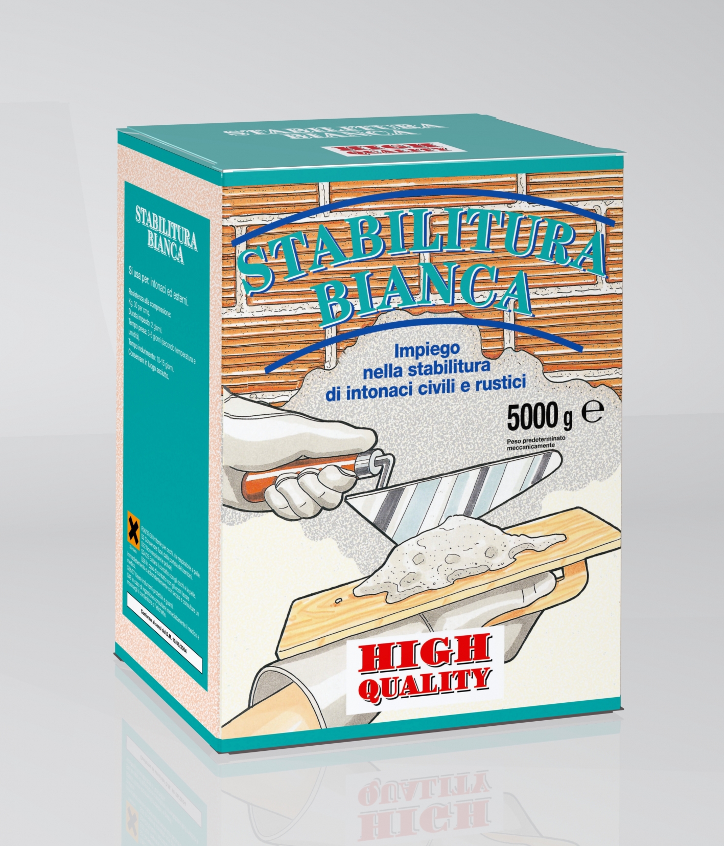 Stabilitura bianca è una malta premiscelata a secco composta da: cemento bianco, calce idrata, aggregato bianco ed additivi che migliorano la lavorabilità, l'adesione e la protezione agli agenti atmosferici. Il prodotto è conforme alla normativa UNI EN 998-1 ed è classificato come malta per intonaco di finitura GP CS II - W1.