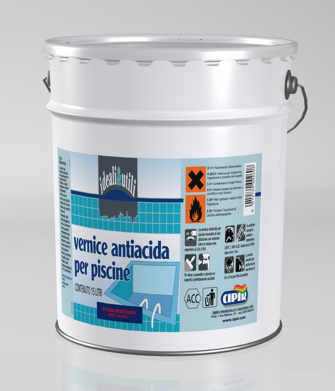 CYCLE: On new substrates: make sure the substrate is perfectly dry, clean and dusted. Apply a coat of the product, thinned with about 10% of nitro thinner. After at least 8 hours, apply the second coat of Vernice antiacida per piscine thinned with about 2% of nitro thinner. If it is considered necessary for aesthetic reasons or to enhance the roughness of the base, apply a third coat of the product after 8 hours.