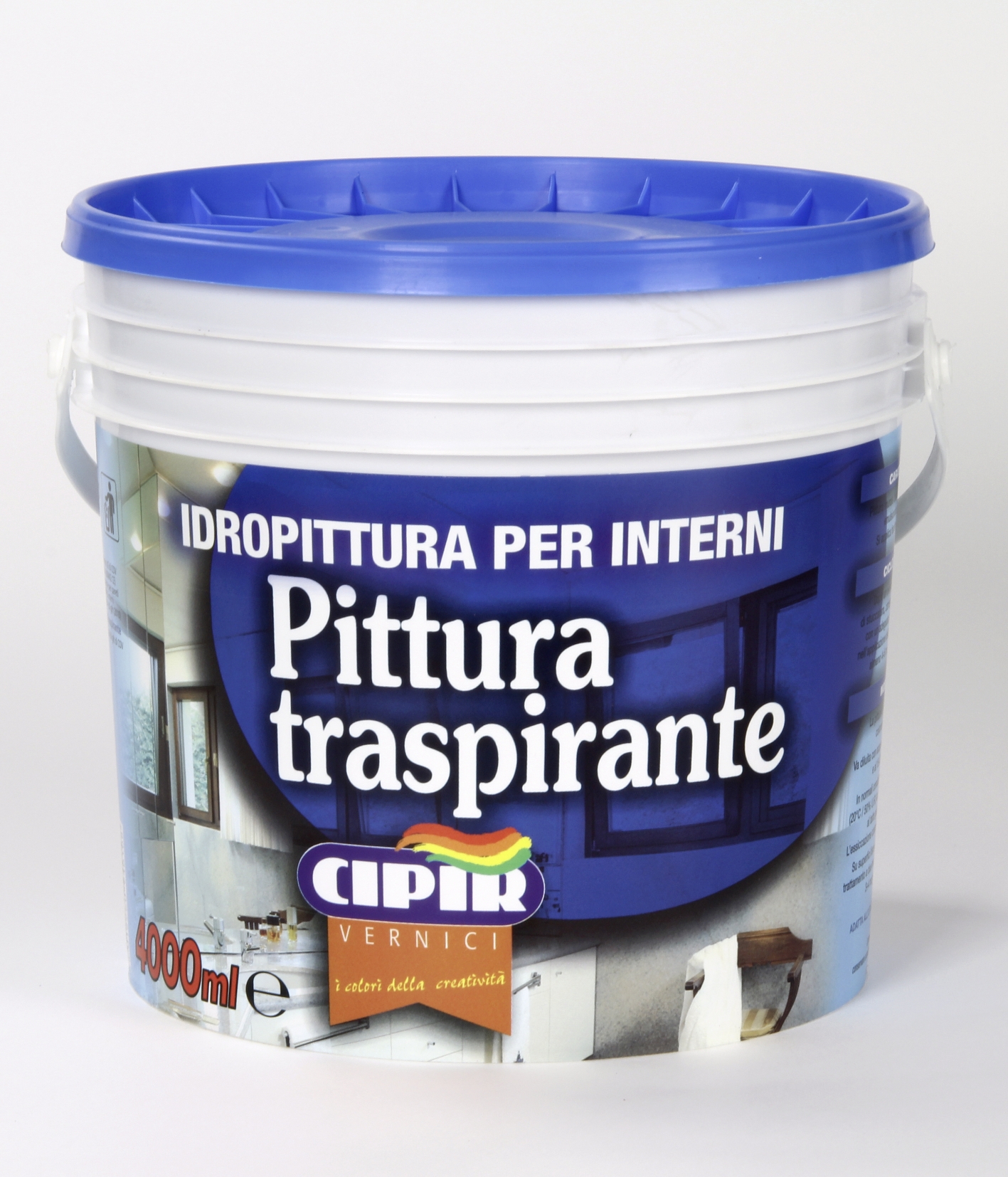 Pittura per interno traspirante a base di resine in emulsione acquosa,biossido di titanio cariche fini e additivi antibatterici.