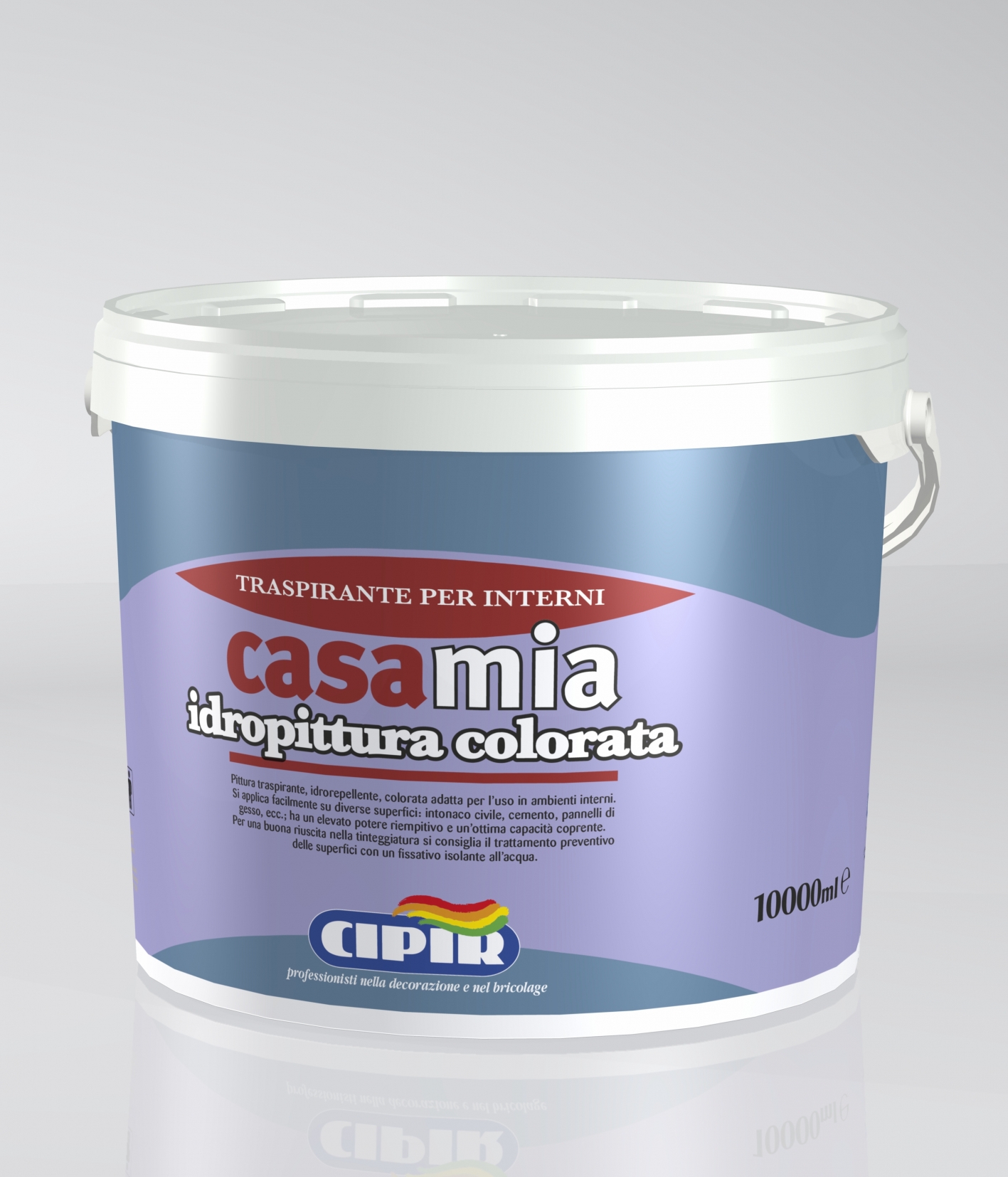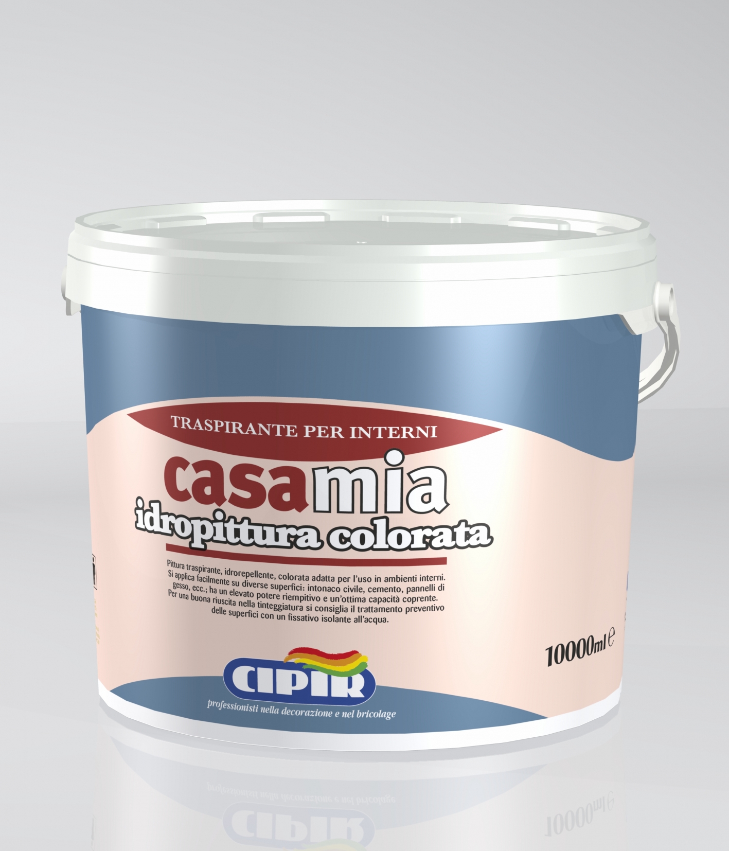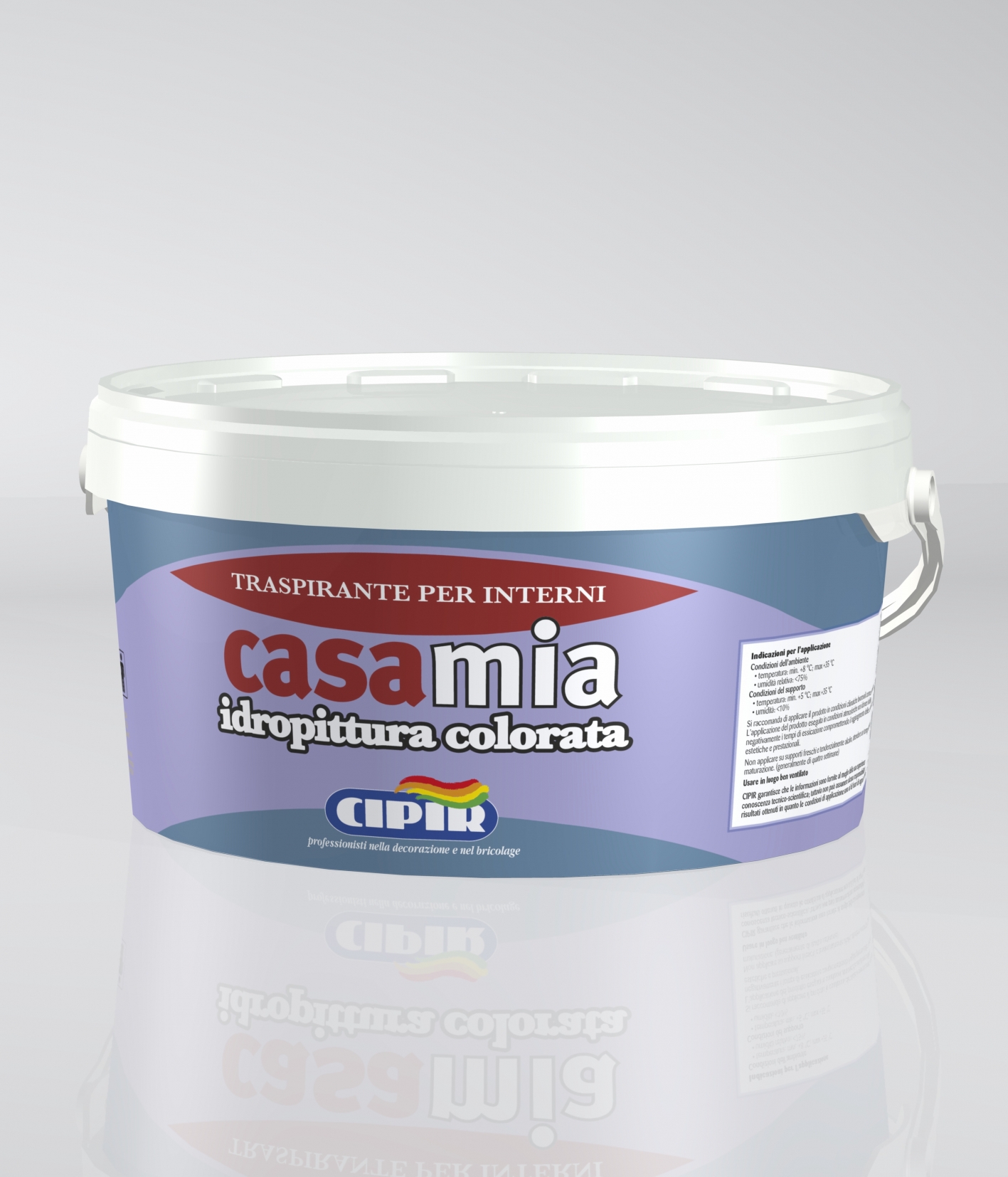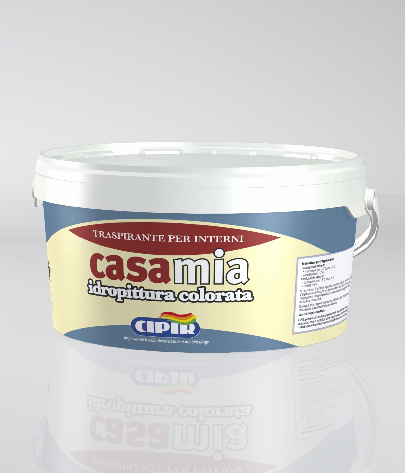 On gypsum and plasterboard: after checking that the surface is dry and clean, as well as appropriately filled and prepared, a first coat of "CIPIRFOND" covering fixative, diluted with maximum 15÷20% water can be applied. After at least 12÷18 hours, the first coat of Casamia - traspirante can be applied. After a further 18 hours, the application can be completed with the second coat of Casamia - traspirante.
