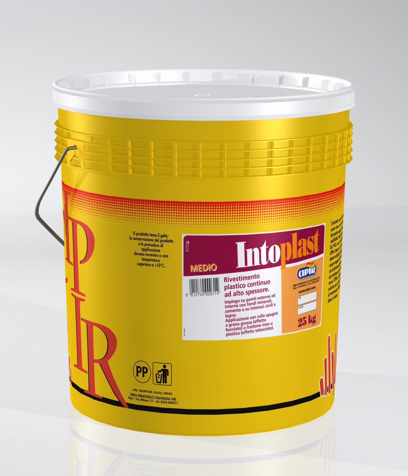 CICLO: Su supporto nuovo: accertarsi che l'intonaco abbia raggiunto la stagionatura di almeno 28 giorni, controllare che la superficie sia asciutta, pulita e senza presenza di polvere o parti poco consistenti. Applicare quindi una mano di fissativo acrilico "FIXCIPIR" oppure di fissativo a micro particelle "LACCA 140W". Dopo almeno 18 ore si potrà procedere con l'applicazione di IntoPlast.