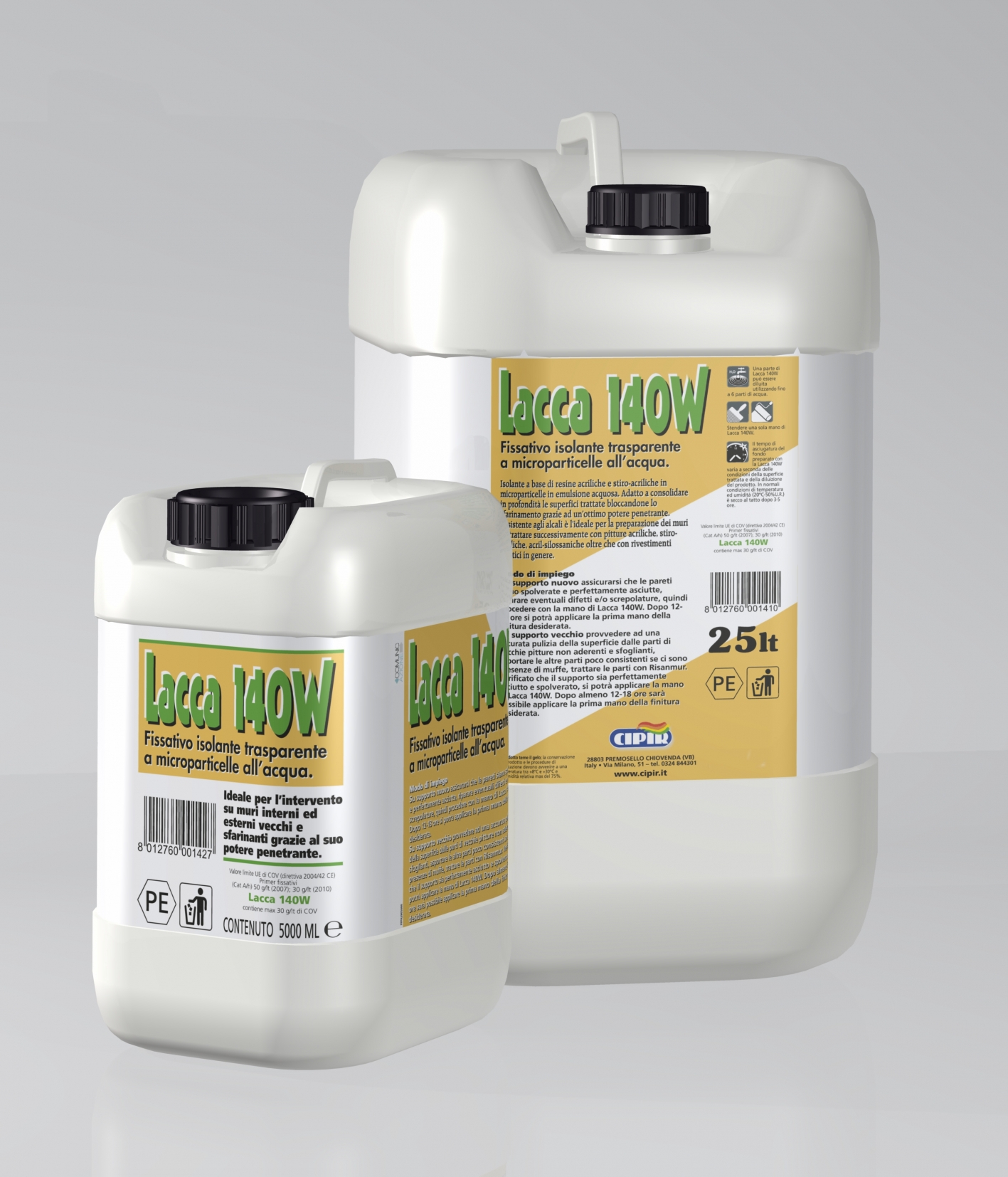 On old substrates: accurately clean the surface of old non-adherent paint and remove other peeling parts. If there is mould, treat the walls with "RISANMUR". Check that the substrate is perfectly dry and dusted and then apply a coat of Lacca 140W. Wait for at least 12÷18 hours before applying the first coat of the desired finish.