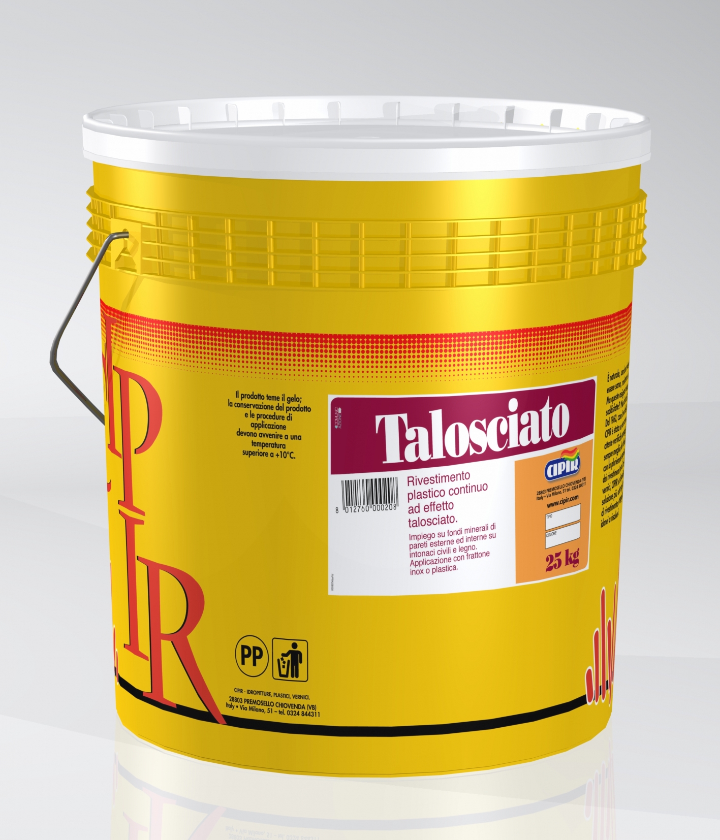 CICLO: Su supporto nuovo: accertarsi che l'intonaco abbia raggiunto la stagionatura di almeno 28 giorni, controllare che la superficie sia asciutta, pulita, senza la presenza di polvere o parti poco consistenti. Applicare quindi una mano di fissativo "FIXCIPIR" diluito con acqua nel rapporto max di 1 parte di prodotto in 5 parti di acqua. Lasciare trascorrere almeno 12÷18 ore quindi applicare il rivestimento Talosciato.
