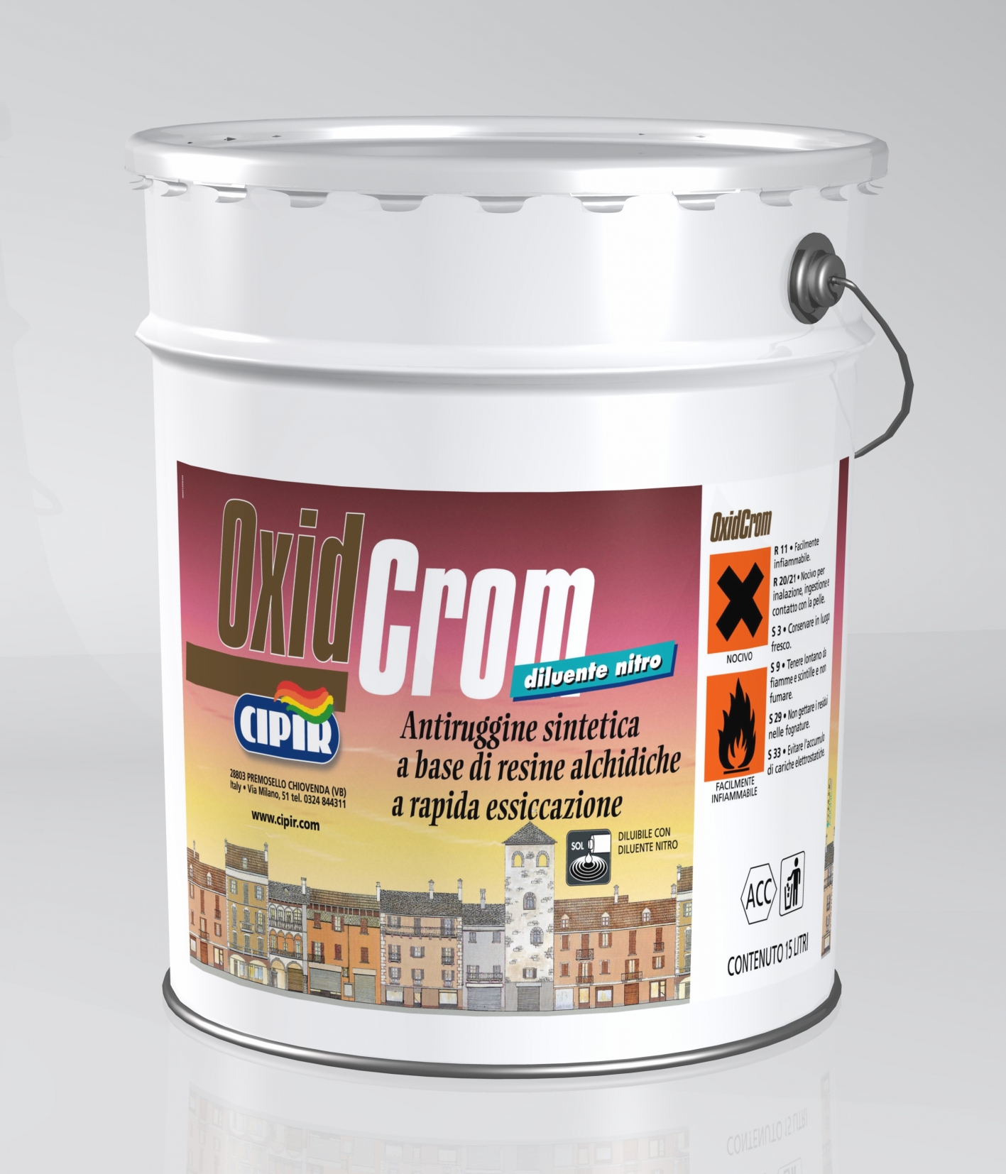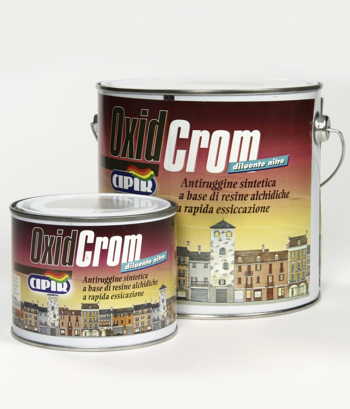 CICLO: Su manufatti metallici nuovi mai verniciati: provvedere alla pulizia da tracce di grasso, unto, asportare mediante spazzolatura, carteggiatura o sabbiatura , a seconda della consistenza, le eventuali tracce o presenza di ruggine. Applicare quindi la mano di OxidCrom rapida essiccazione. Dopo almeno 24÷36 ore applicare, se lo si ritiene necessario, una eventuale seconda mano di OxidCrom rapida essiccazione. Trascorse ulteriori 24÷36 ore, si potrà applicare la prima mano di finitura a smalto nel colore desiderato.