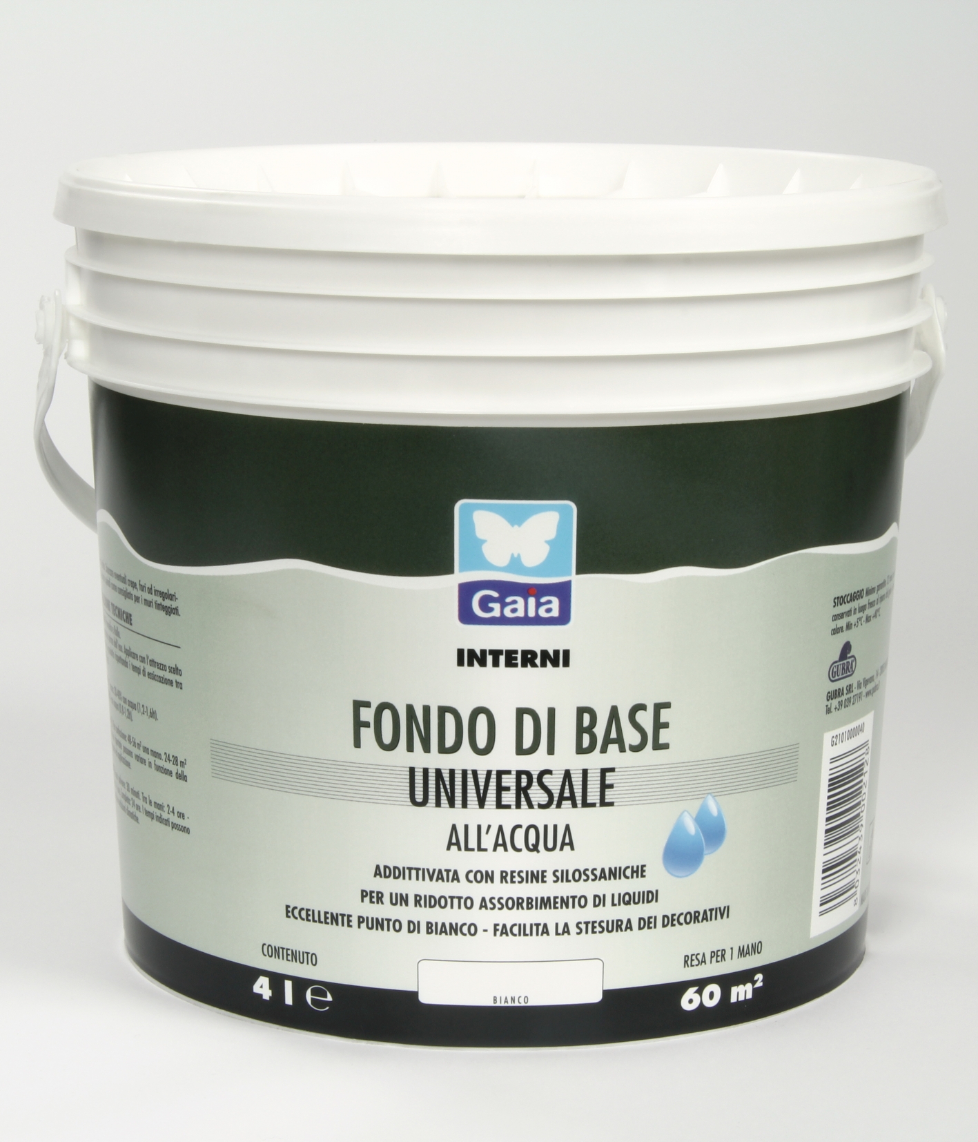 Paint with a slightly silky effect, formulated with: siloxane resin to adjust the absorption of the substrates and to ensure the excellent workability of decorative products; fine silica powder to facilitate the application of the decorative colours and paste products; titanium to confer excellent coverage and white balance.