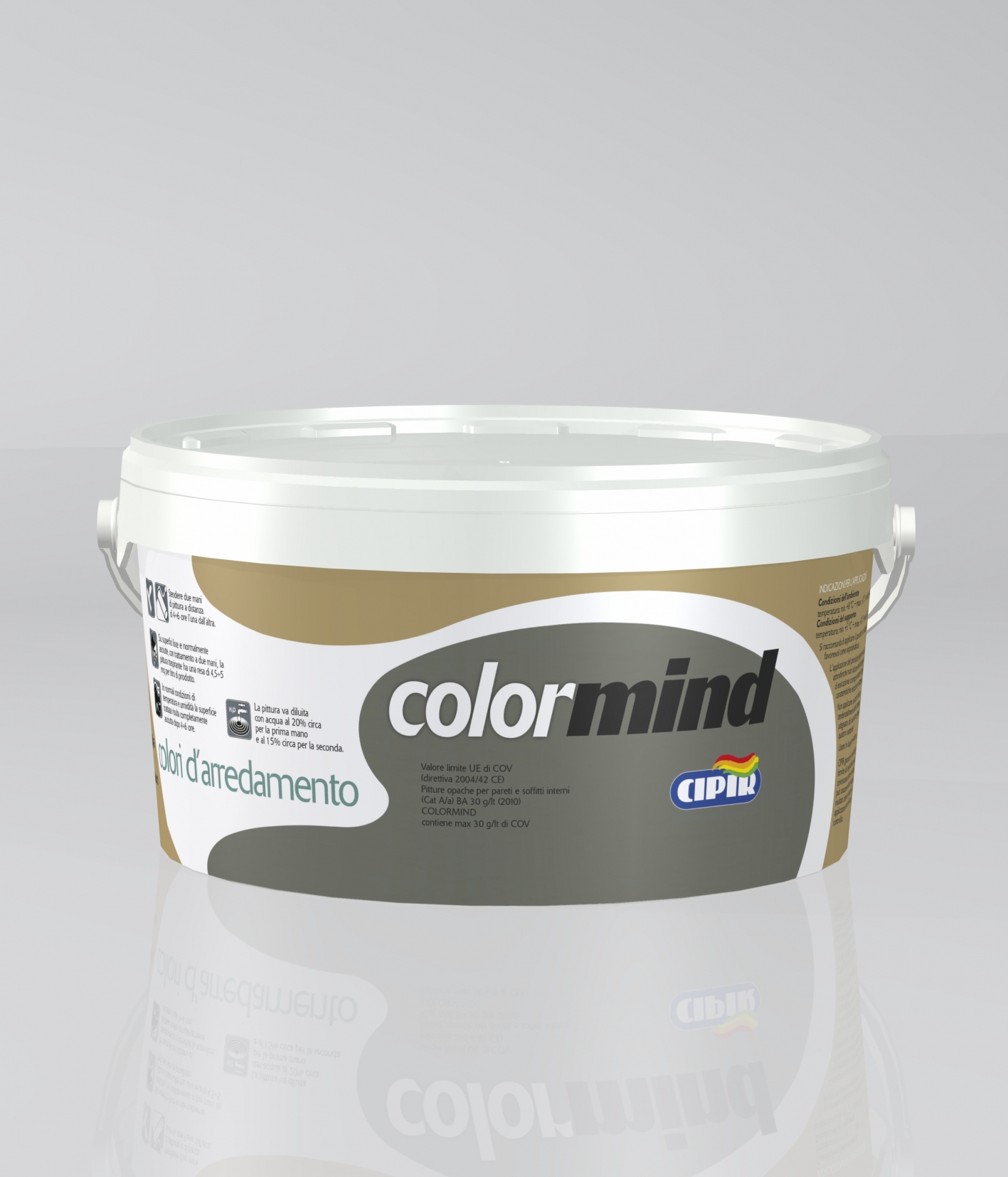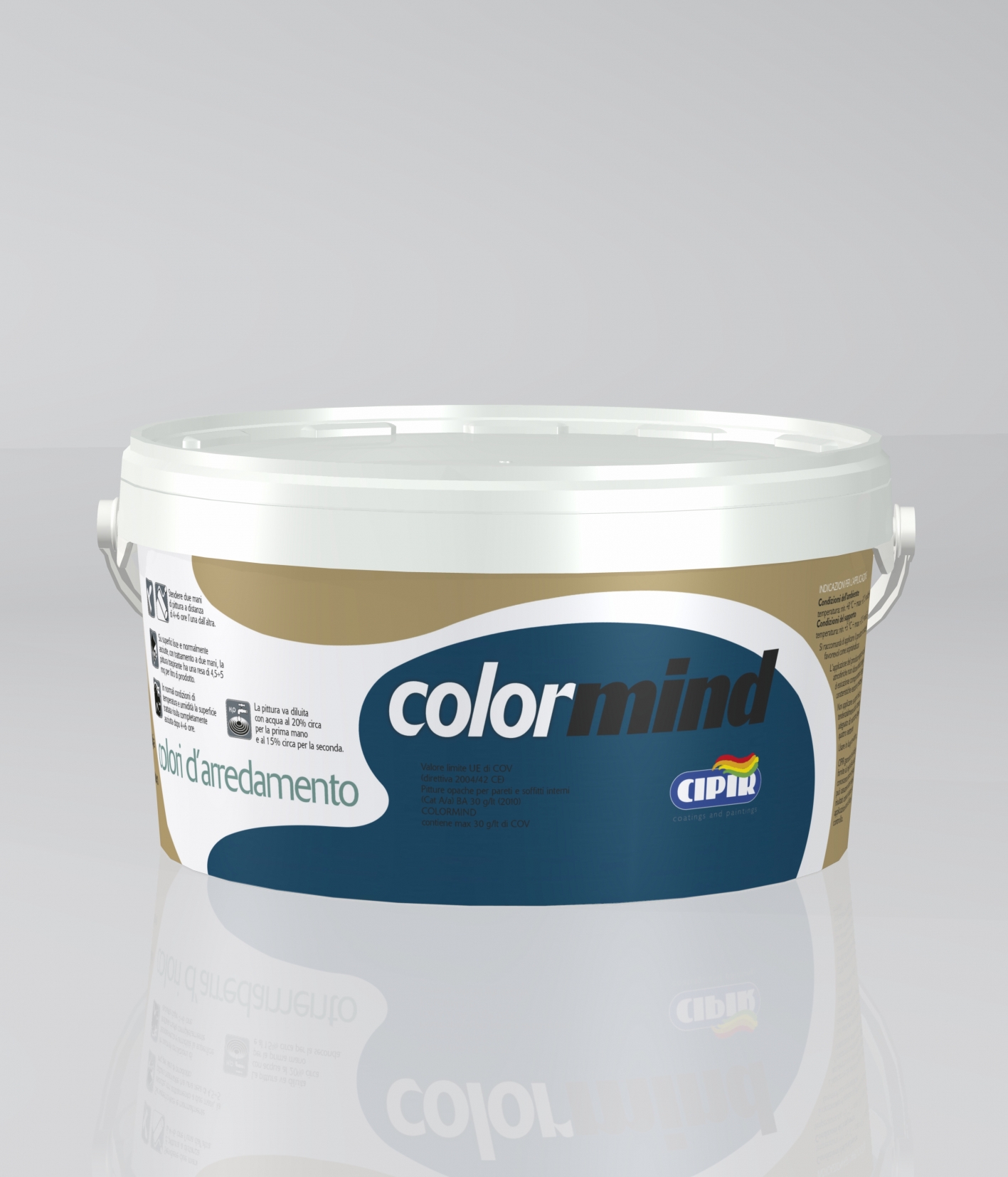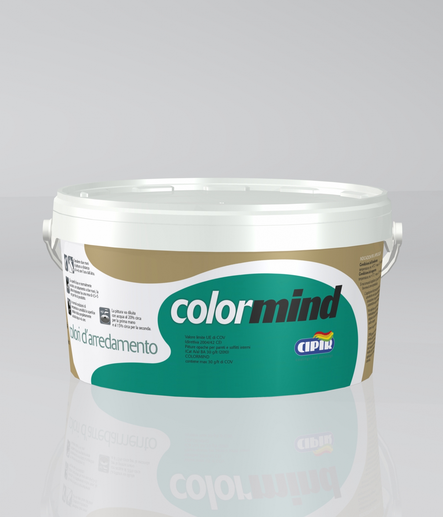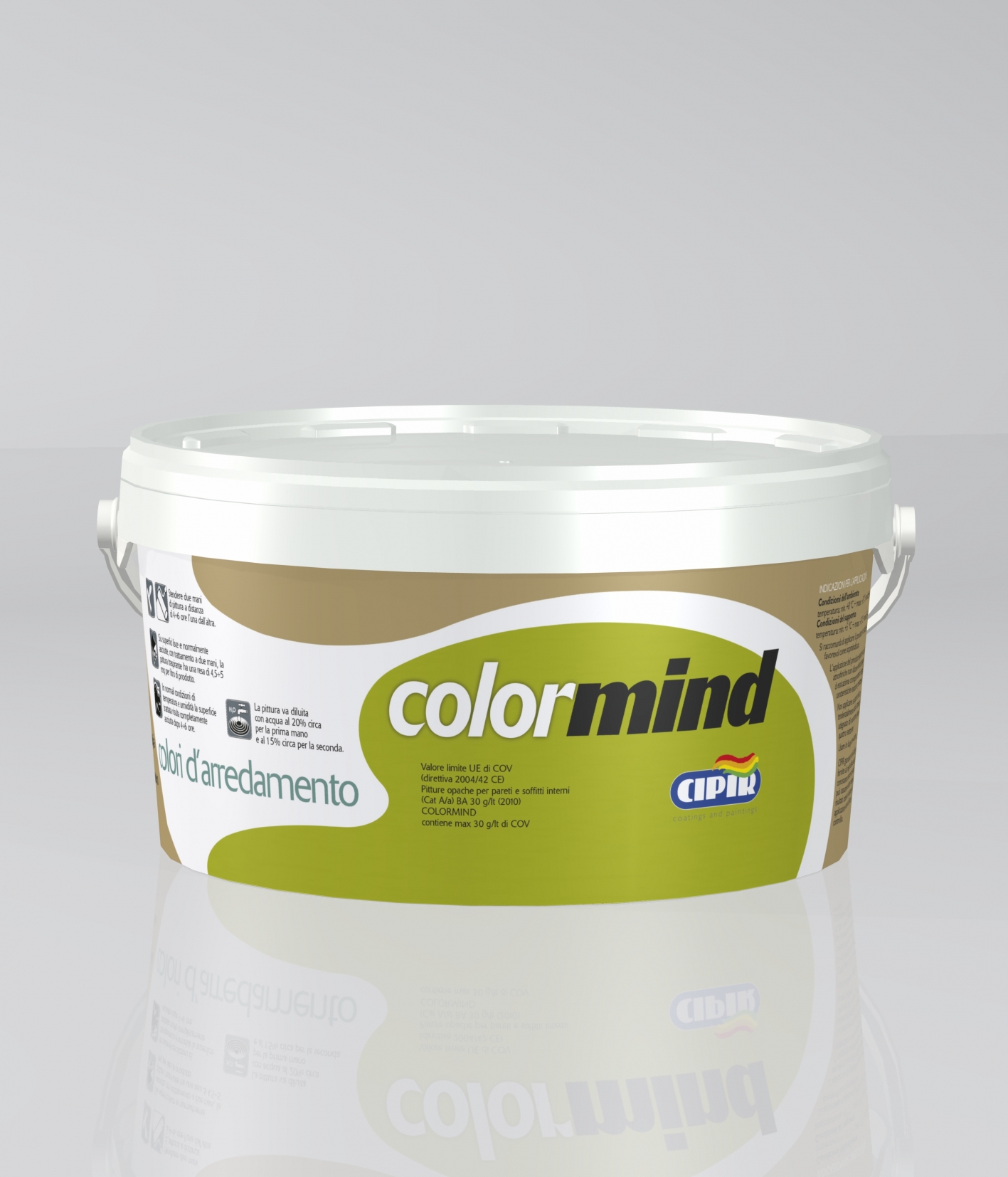 COMPOSTI ORGANICI VOLATILI Valore limite UE di COV (direttiva 2004/42 CE) Pitture opache per pareti e soffitti interni (Cat A/a) BA 30 gr/lt (2013) ColorMind contiene max 30 gr/lt di COV