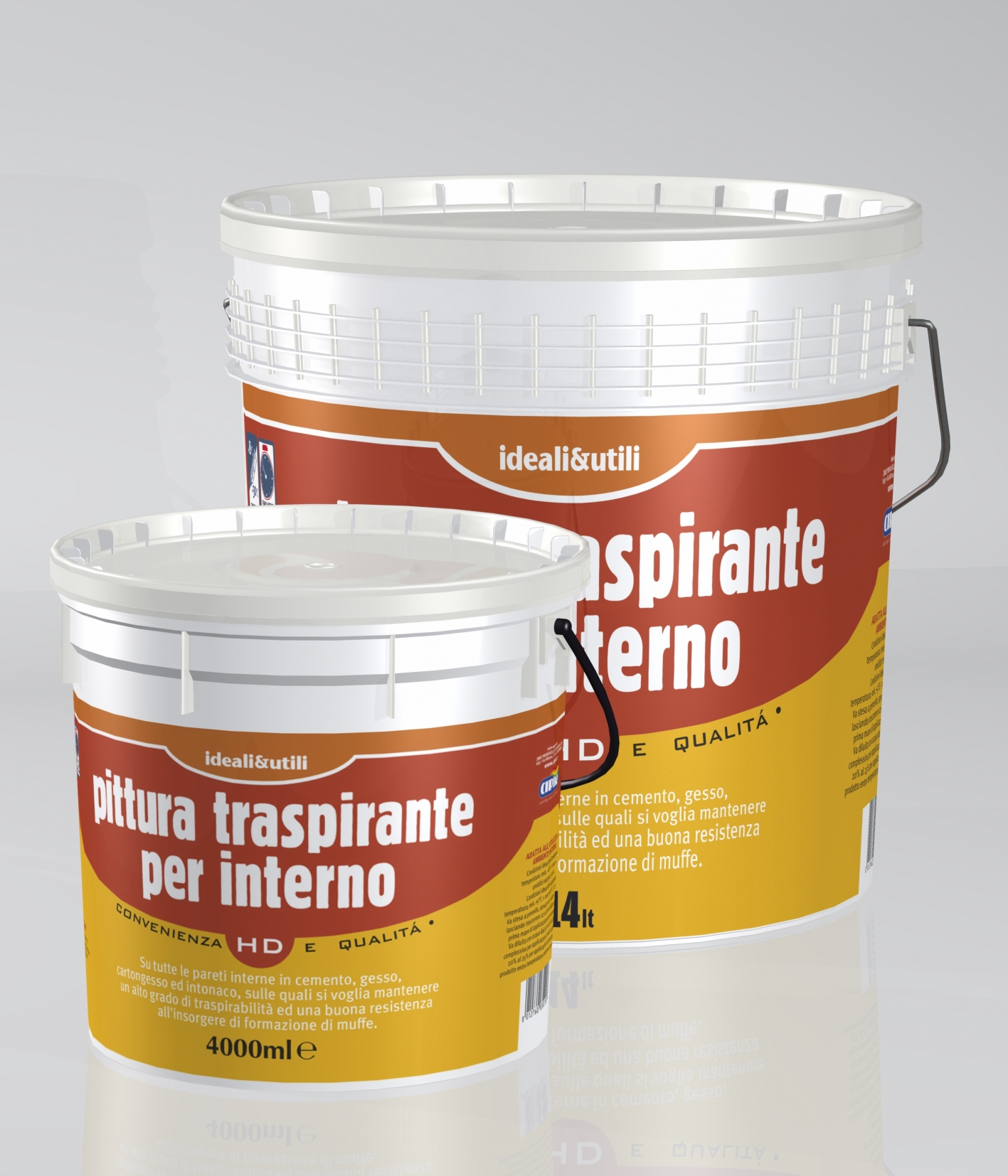 Pittura per interno traspirante a base di resine acriliche in emulsione acquosa, cariche cristalline ed amorfe fini, biossido di titanio rutilo e componenti antibatterici.