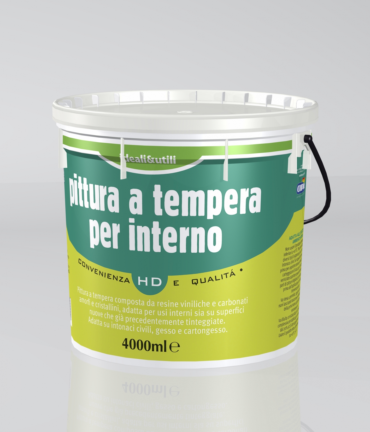 Pittura a tempera composta da resine viniliche e carbonati amorfi e cristallini, adatta per usi interni sia su superfici nuove che già precedentemente tinteggiate.