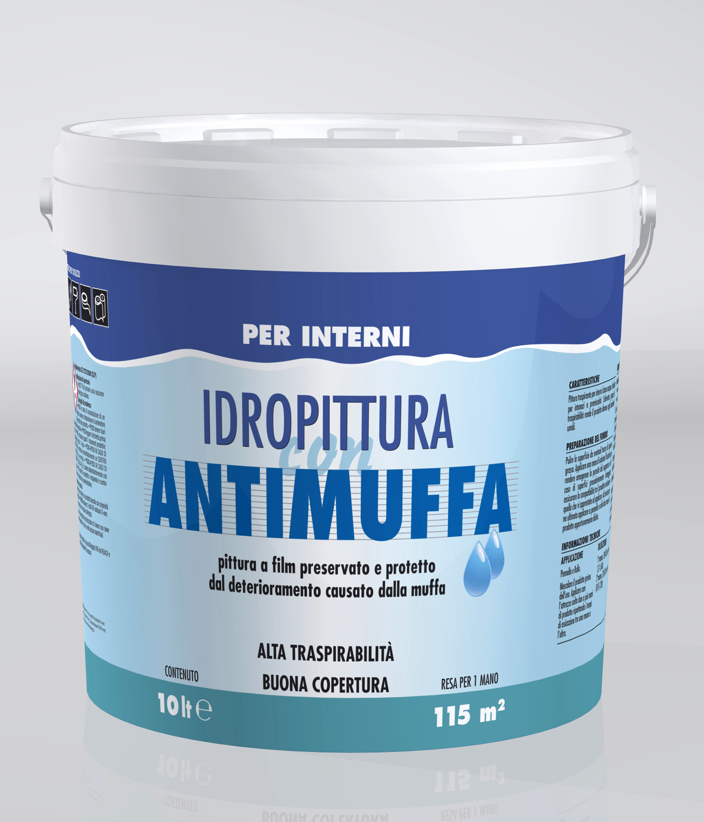 Terminata la preparazione del fondo, dopo almeno 12 ore si potrà applicare la prima mano di Idropittura Antimuffa e dopo altre 18 ore la seconda.