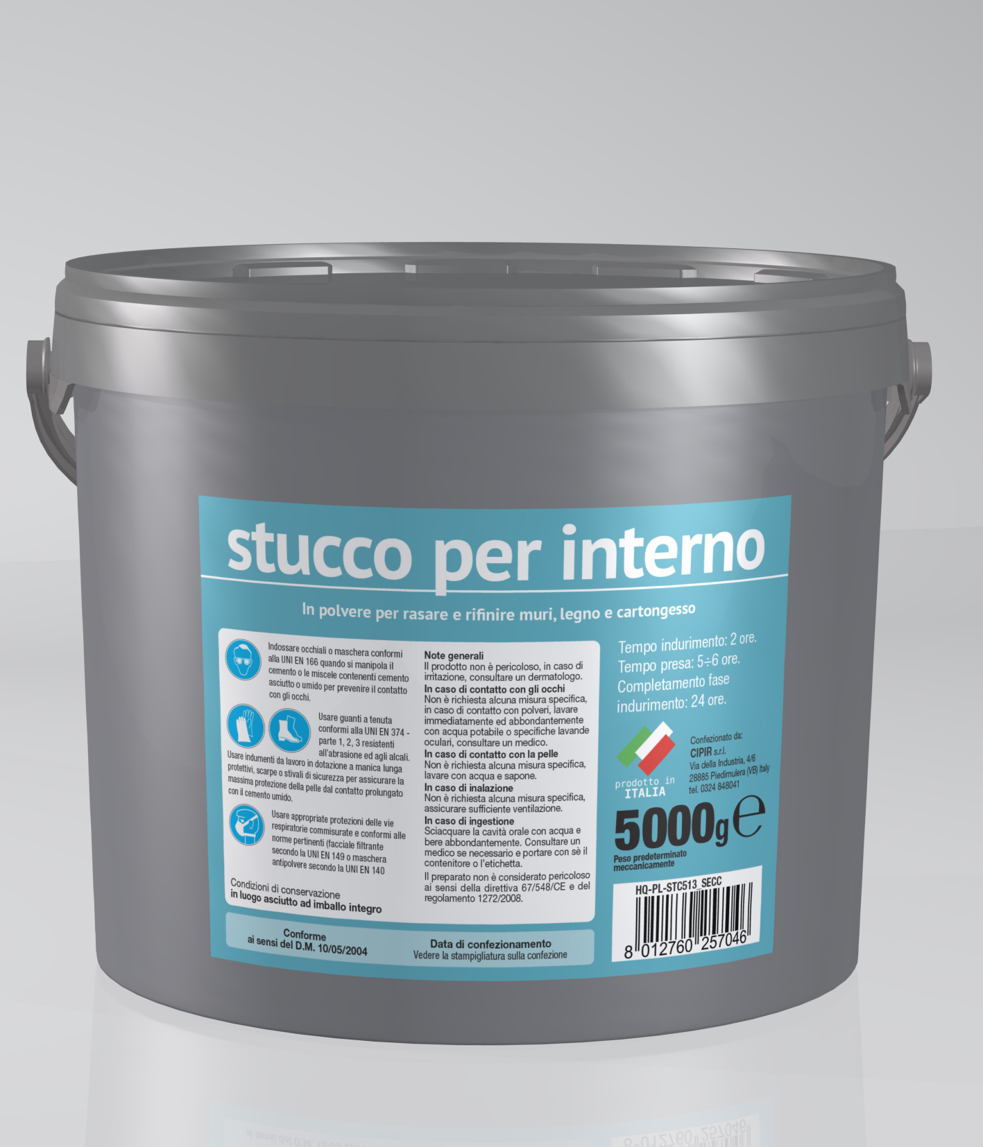 Powder filler for interiors, formulated with alabaster gypsum, calcium carbonate, kaolin and specific additives. It can be perfectly dry sanded.