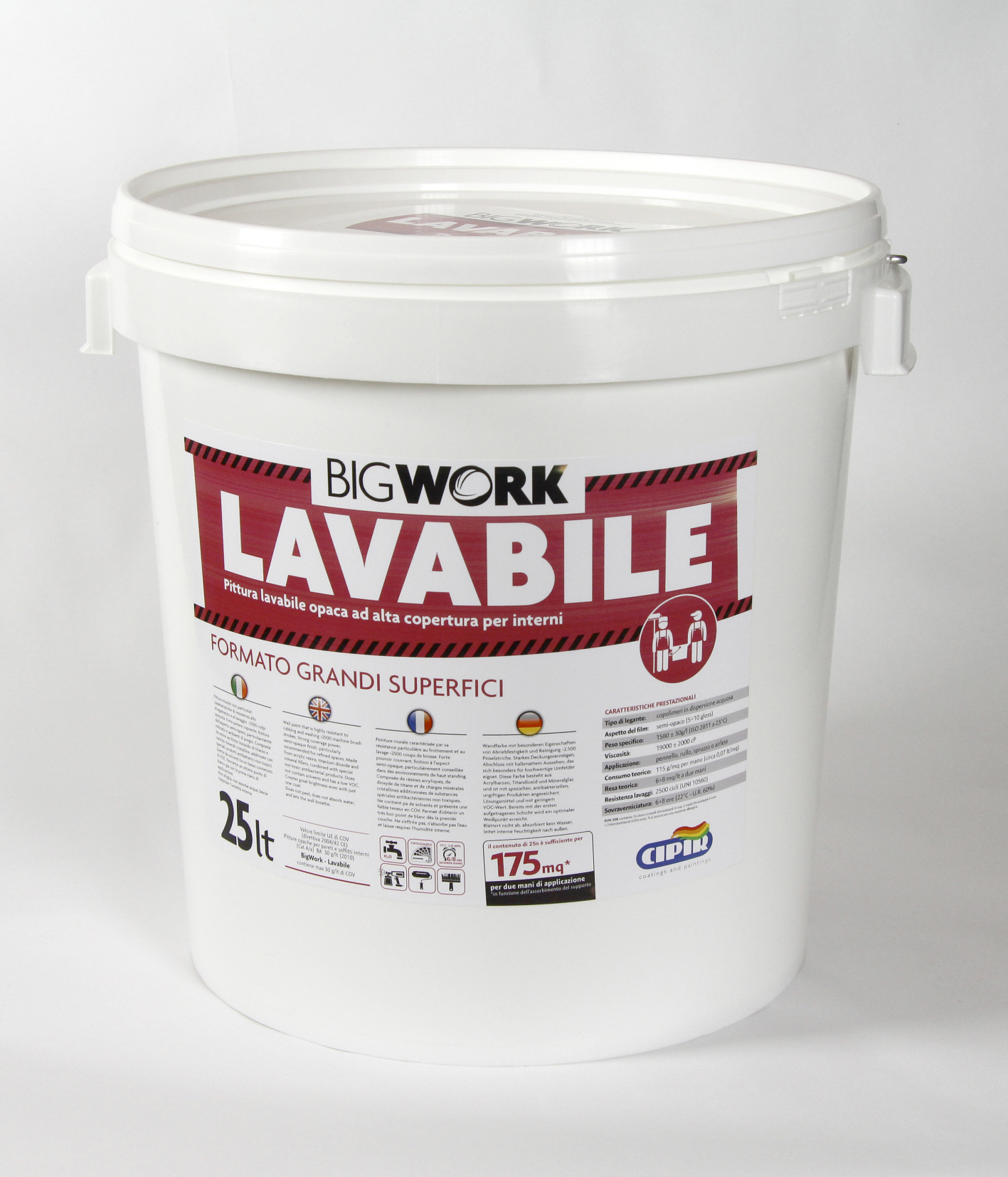 VOLATILE ORGANIC COMPOUNDS EU limit value VOC (Directive 2004/42 EC) Pitture opache per pareti e soffitti interni (Cat A/a) BA 30 gr/lt (2013) BigWork - Lavabile max contains 30 gr/lt di VOC