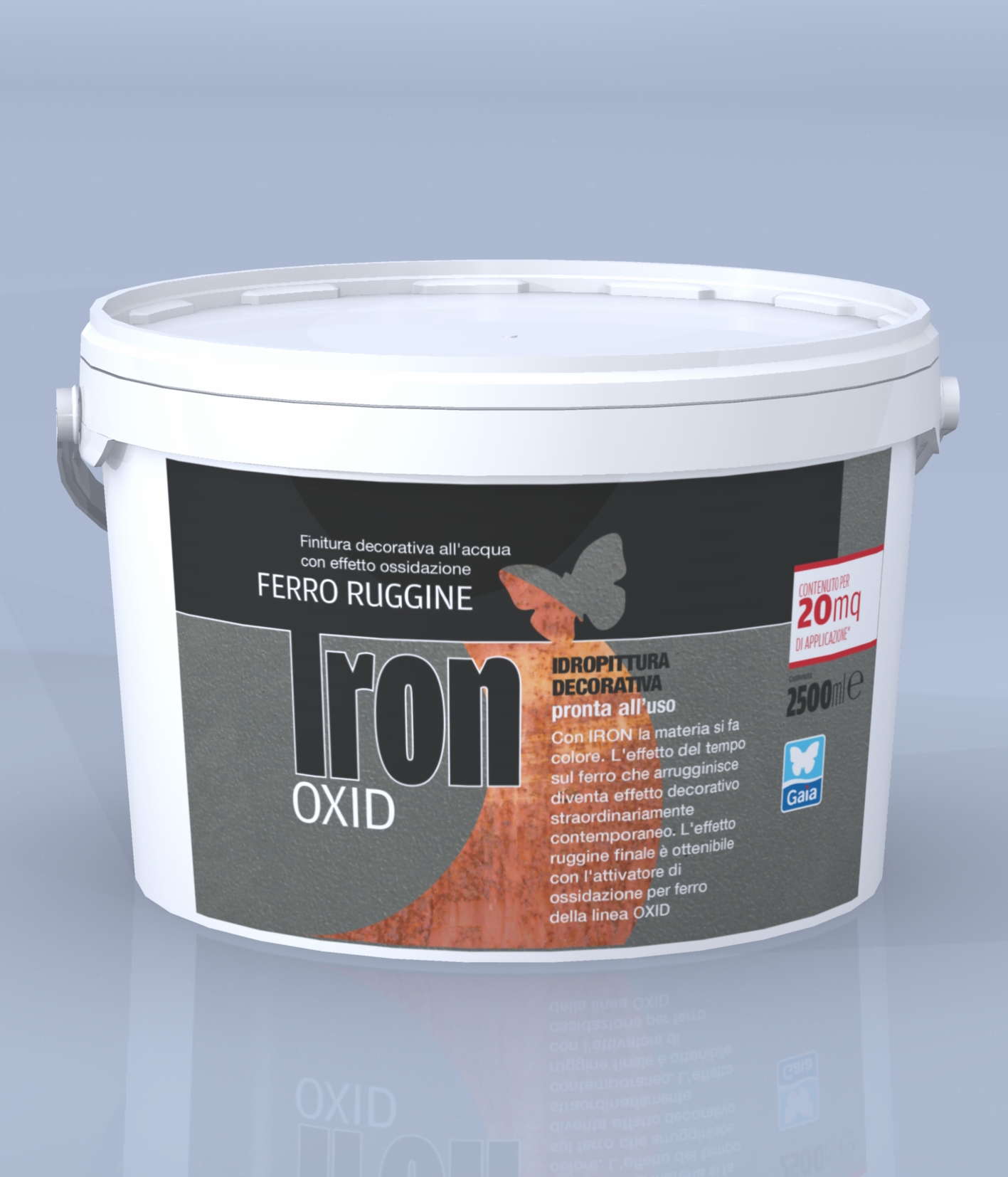 CICLO: Preparare il supporto con "FONDO DI BASE" con almeno due mani di fondo a distanza di almeno 6 ore l'una dall'altra, procedere quindi, dopo 6 ore dall’ultima mano di fondo, con la stesura di una mano di Oxid - Iron.