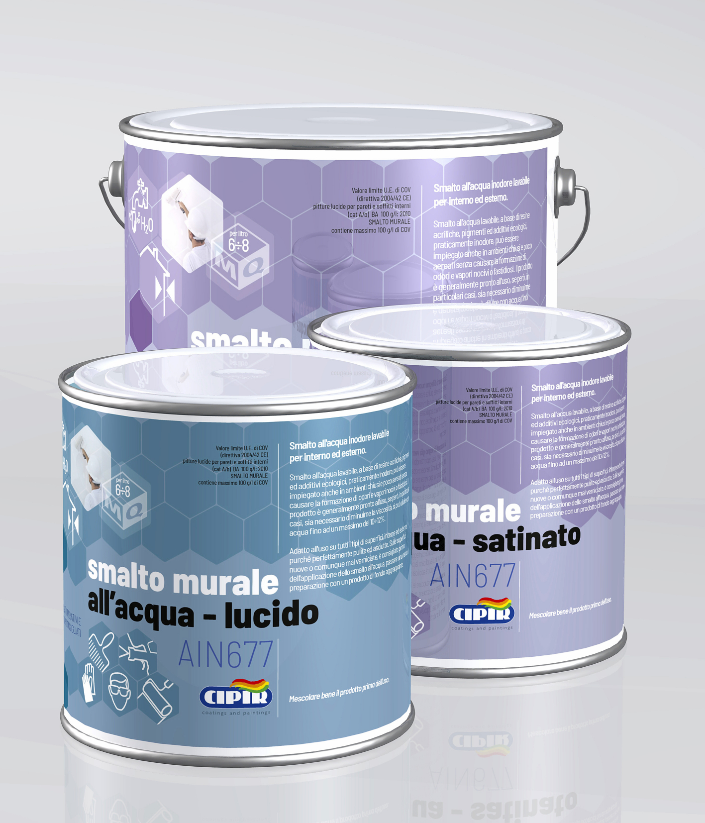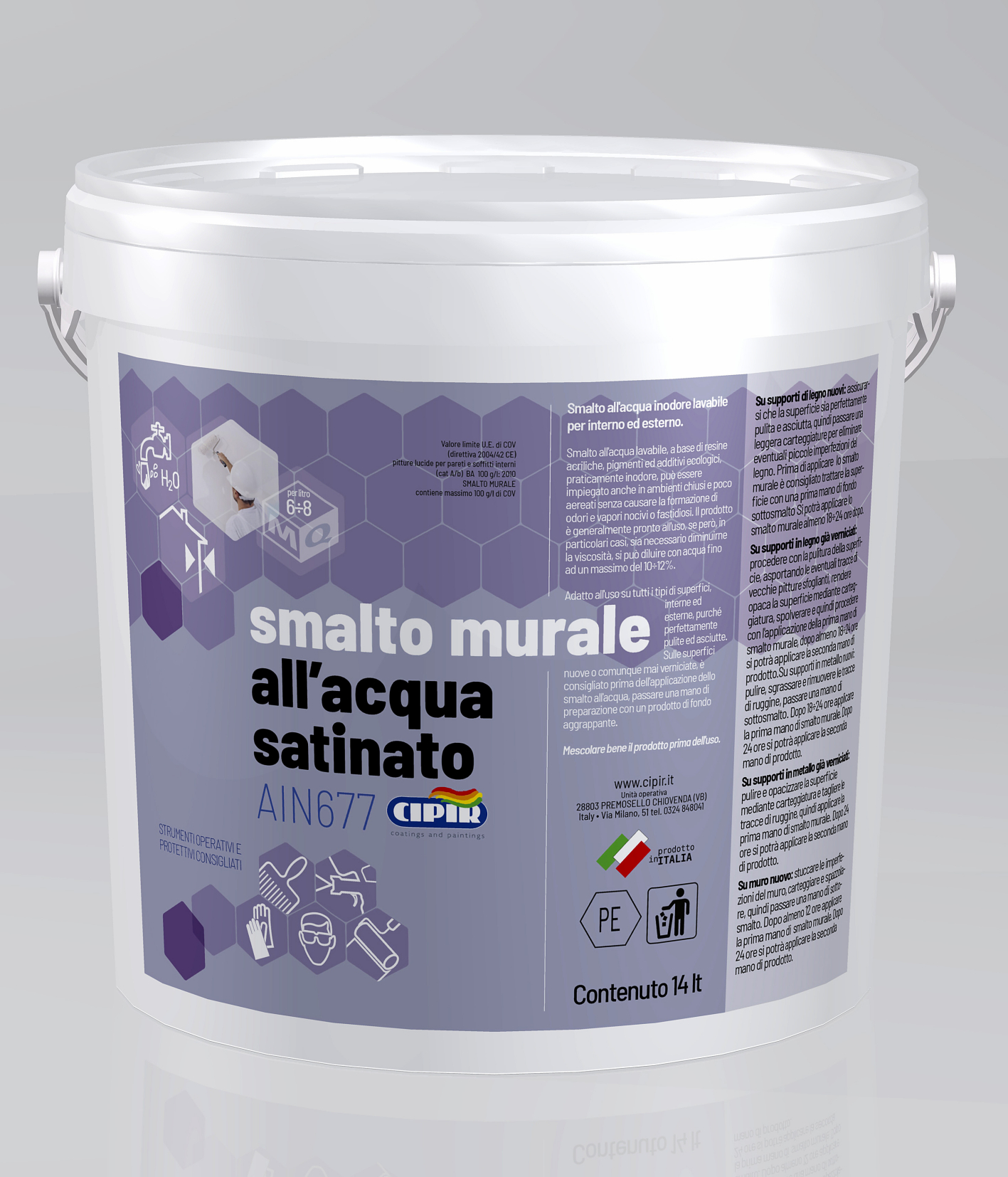 CYCLE: On new walls: make sure the substrate is dry, clean and free of impurities; previously treat the surface with a coat of sottosmalto sealer or in the case of a particularly rough substrate, a coat of CipirFond. After at least 8 hours, the first coat of Smalto murale all'acqua can be applied. The second coat can be applied after a further 18 hours.