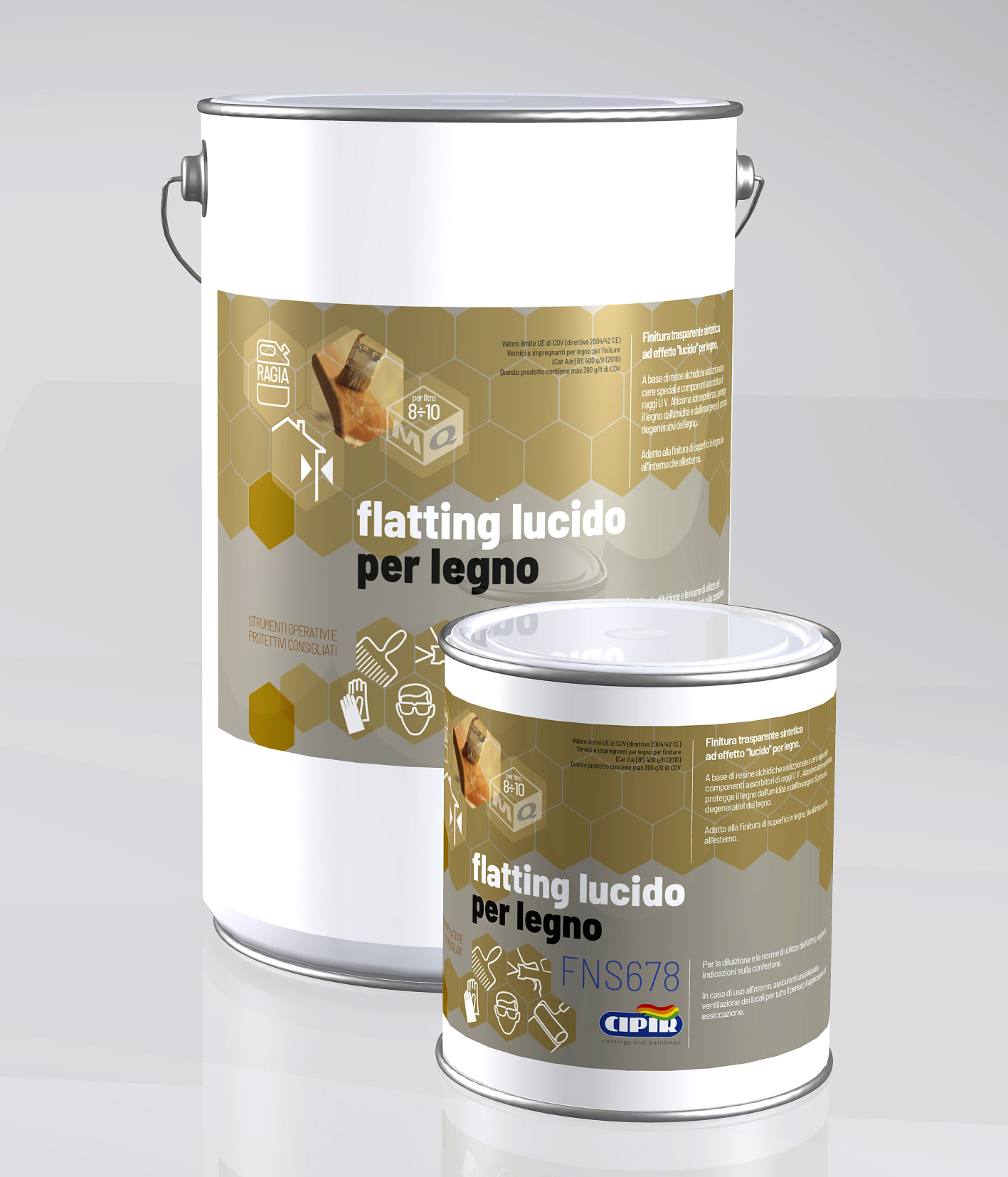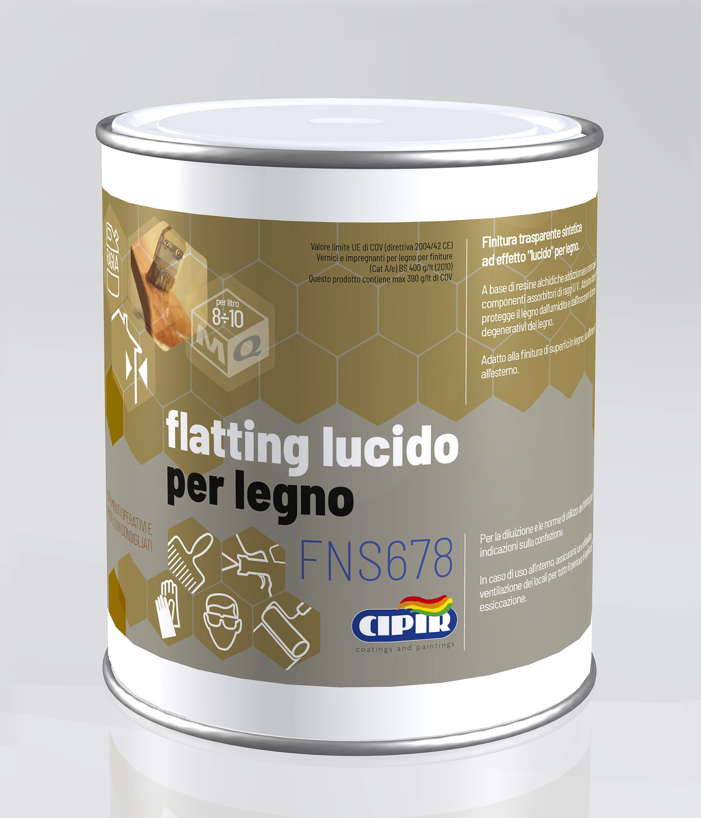 CYCLE: On new substrates: check that the surface is perfectly dry and free from oil and other impurities; it is advisable to previously apply a coat of in the desired colour. After at least 24 hours, apply the first coat of Flatting lucido per legno. After a further 24 hours, the second coat of the product can be applied.