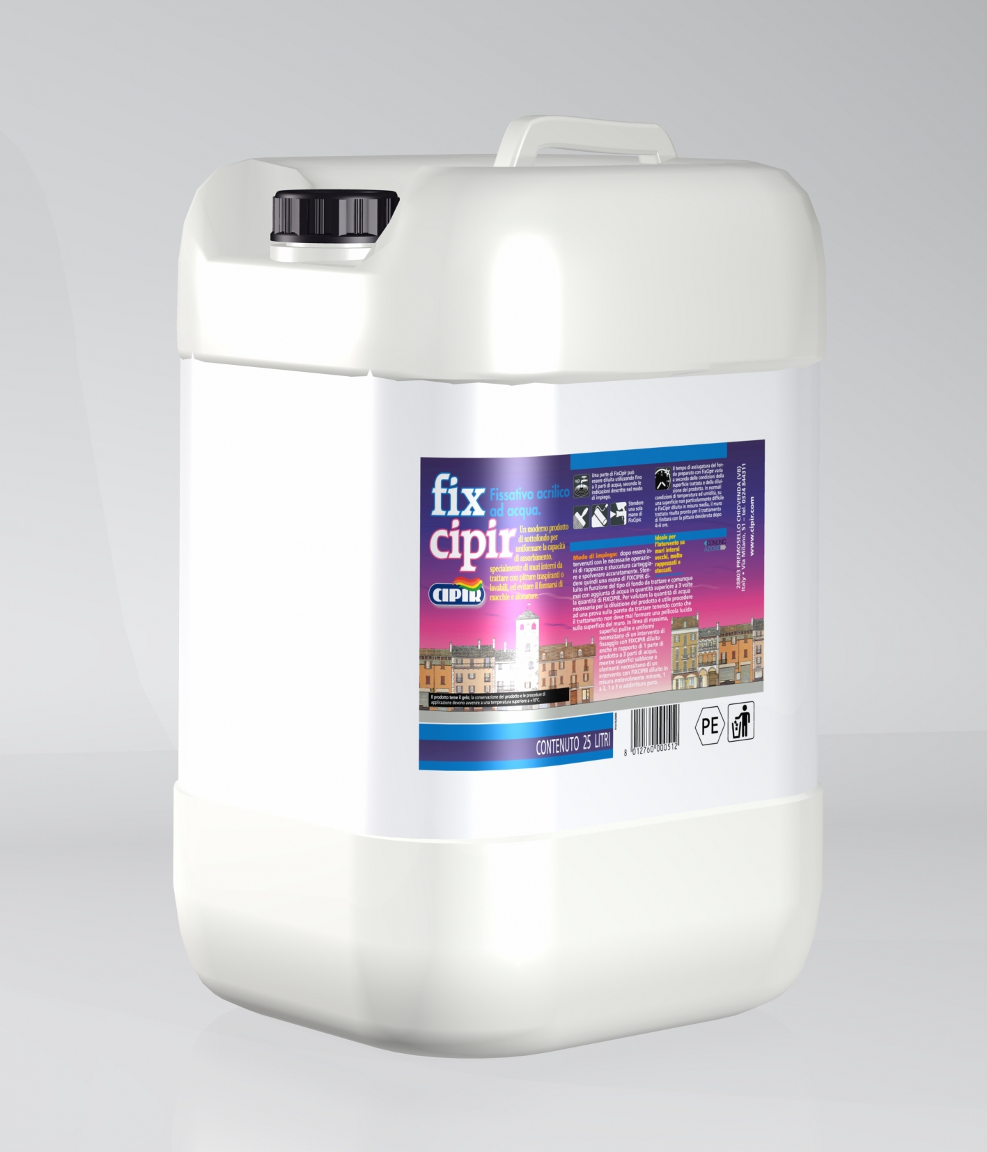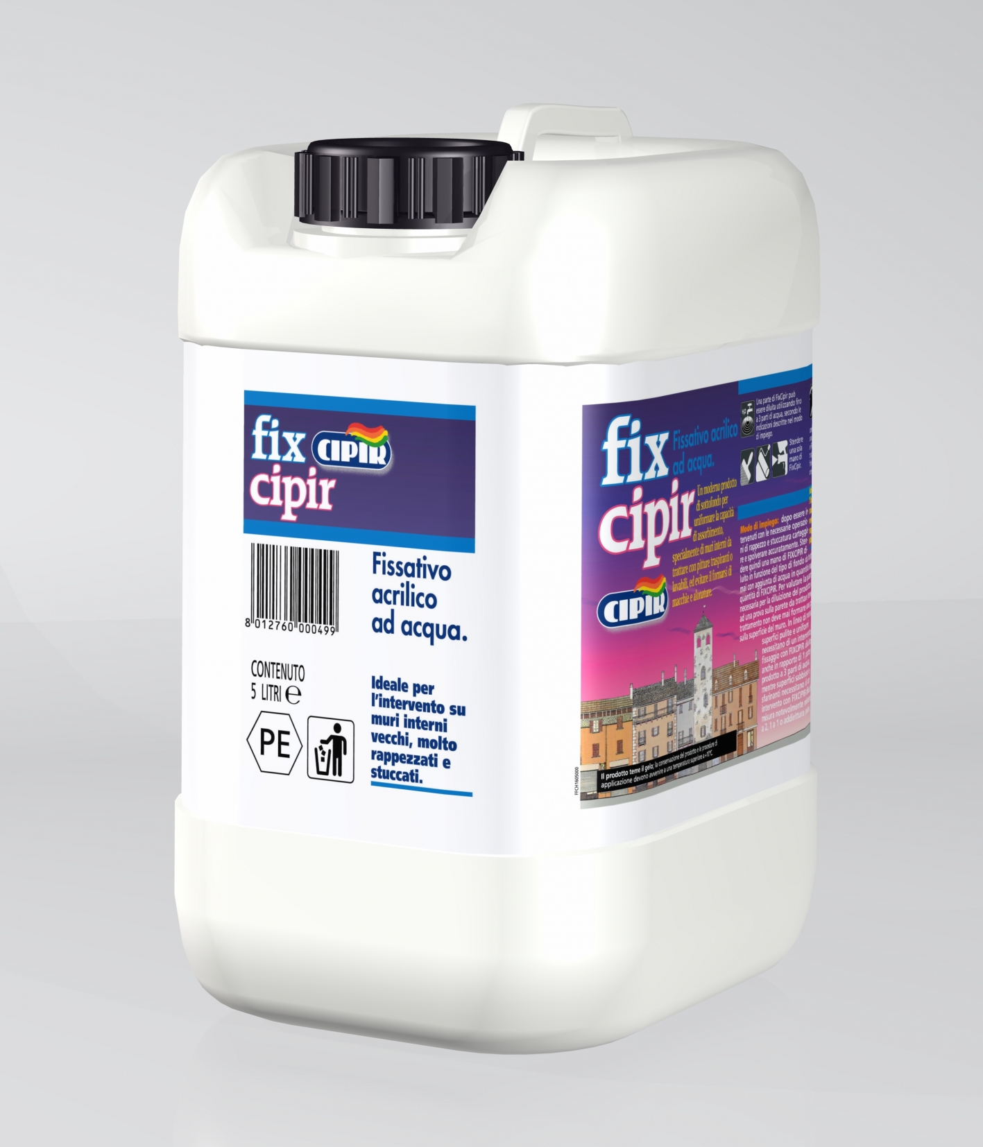 CYCLE: New interior walls: clean the surface well, make sure it is perfectly dry, fill any cracks and/or small holes with "MASTICFAS" or with "STUCCO IN PASTA". After around 1÷2 hours apply FixCipir, in the dilution required by the substrate absorption capacity.
