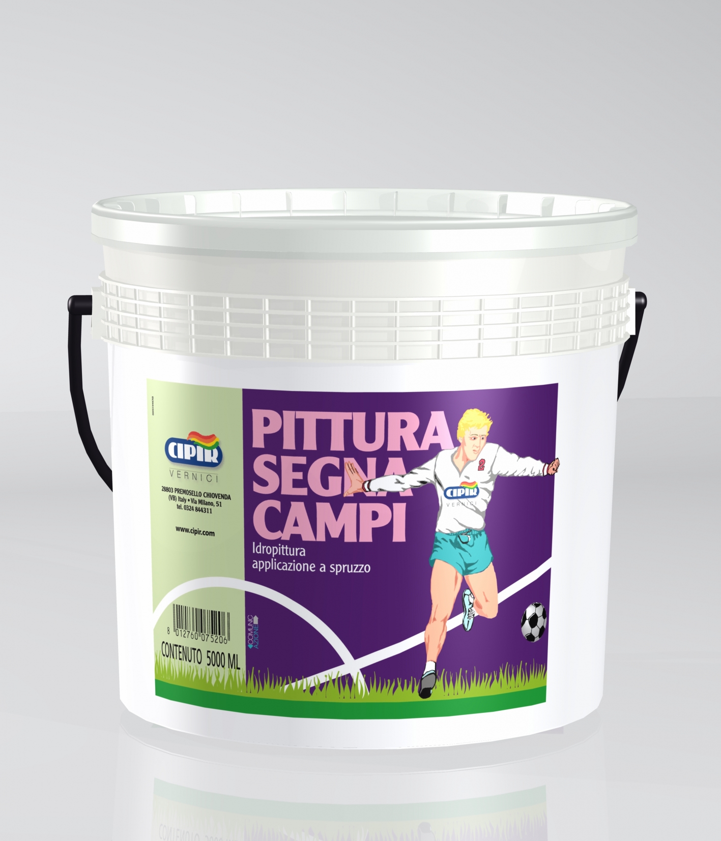 Per la tracciatura di campi da calcio, rugby, in erba mediante macchina traccialinee o a spruzzo in maniera tradizionale.