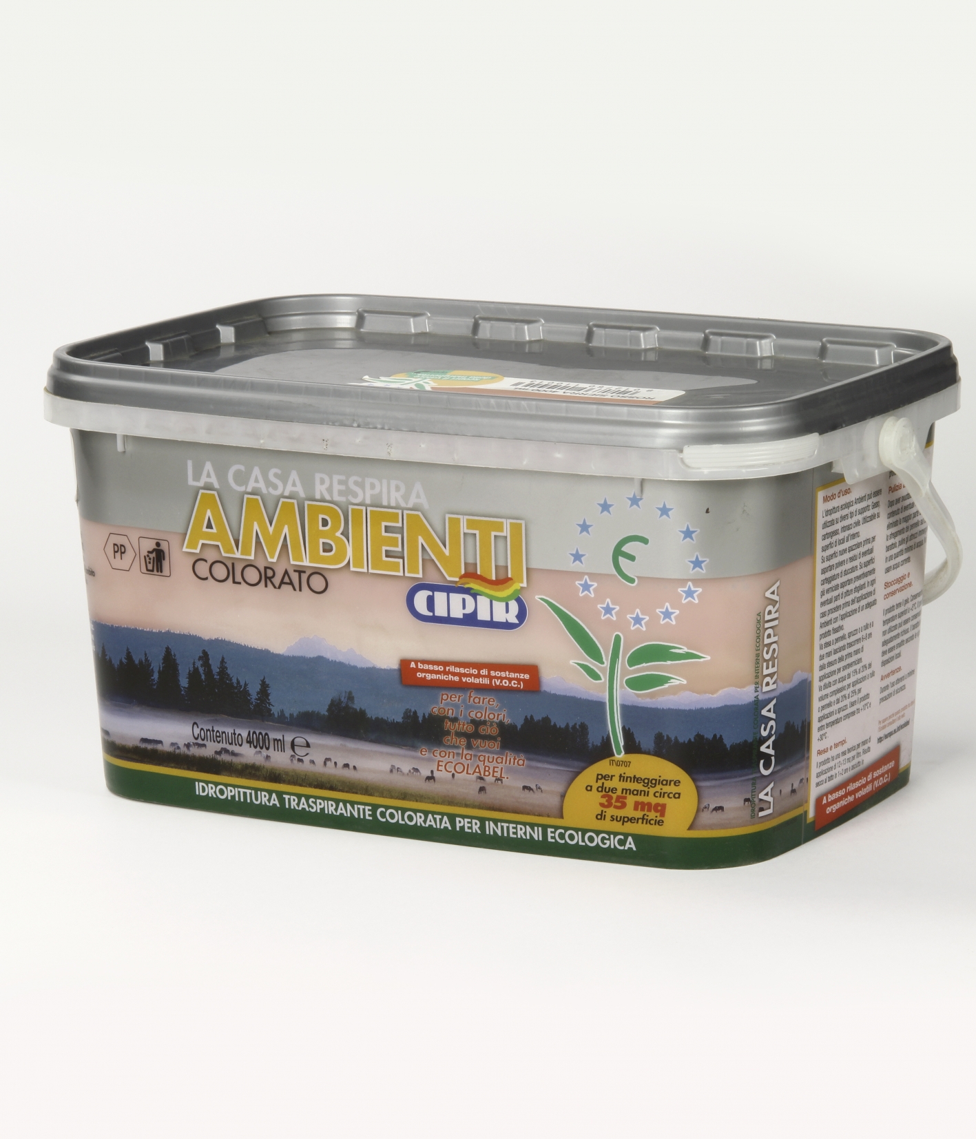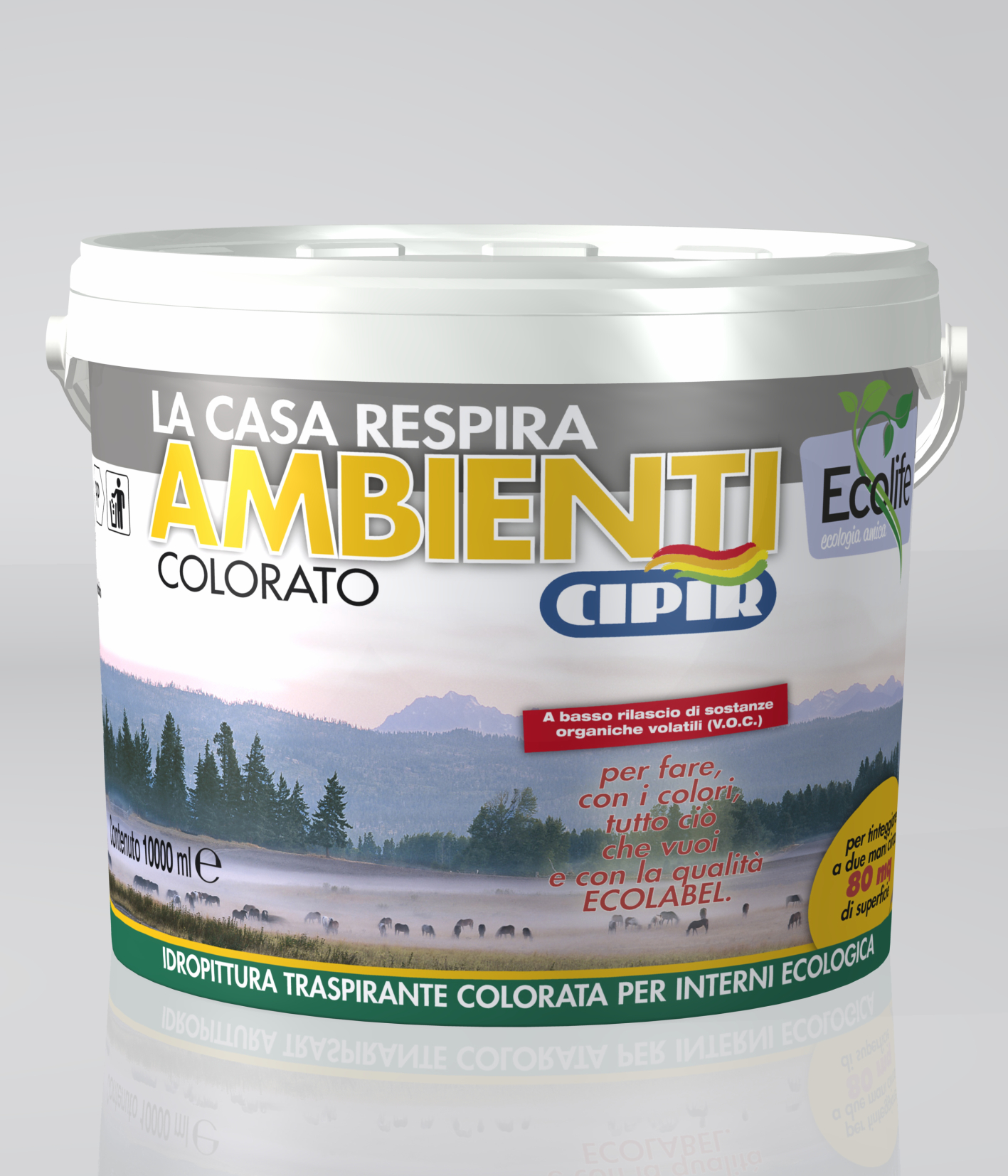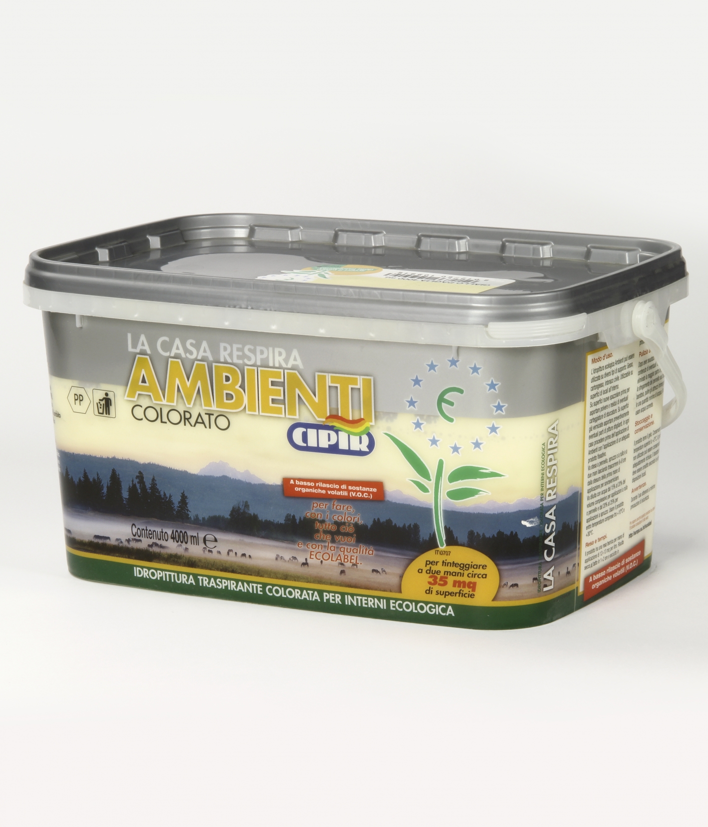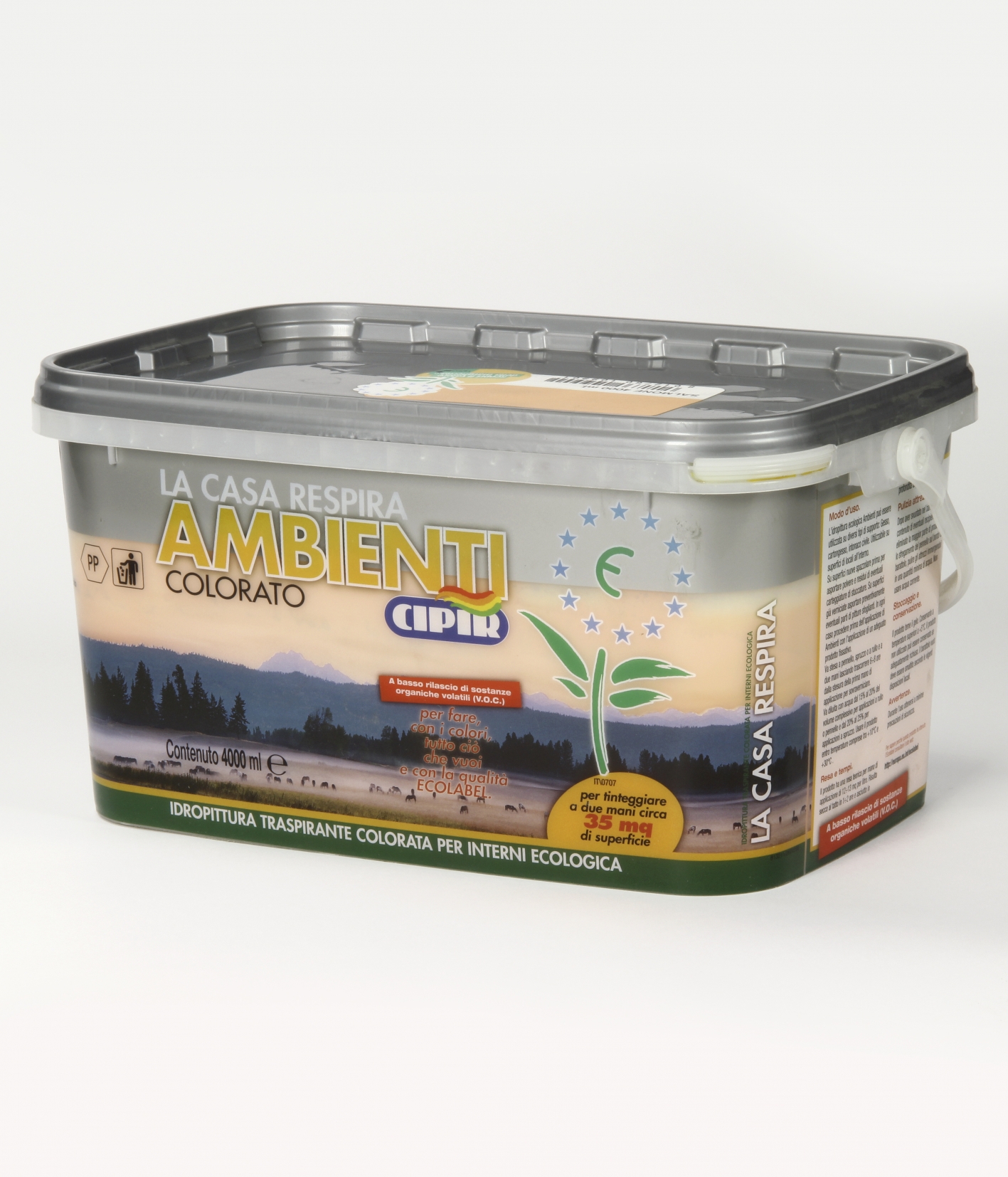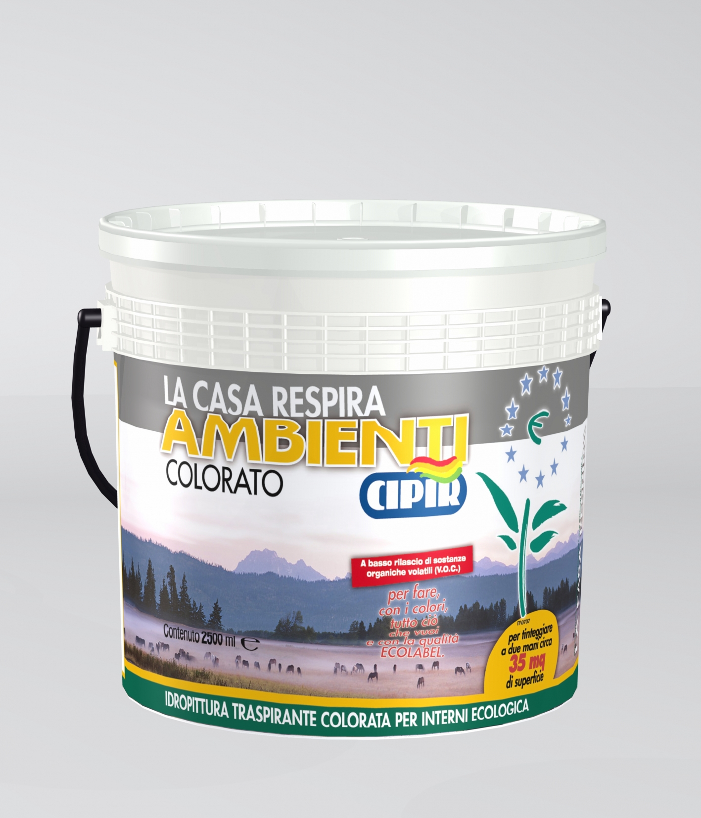 Coloured water-based breathable ecologic paint for interiors.
