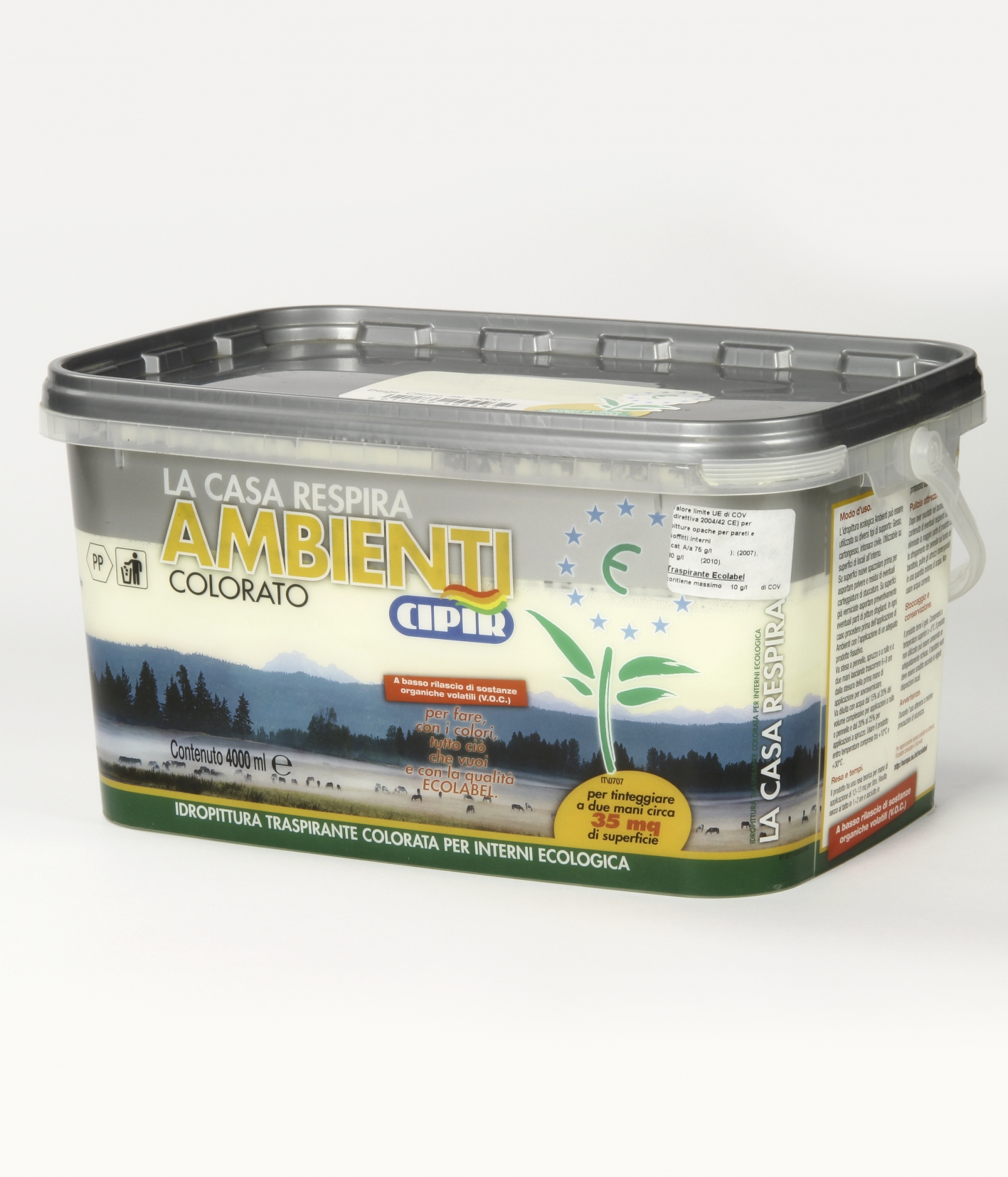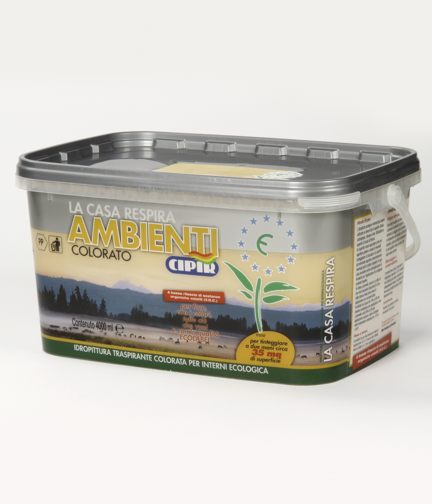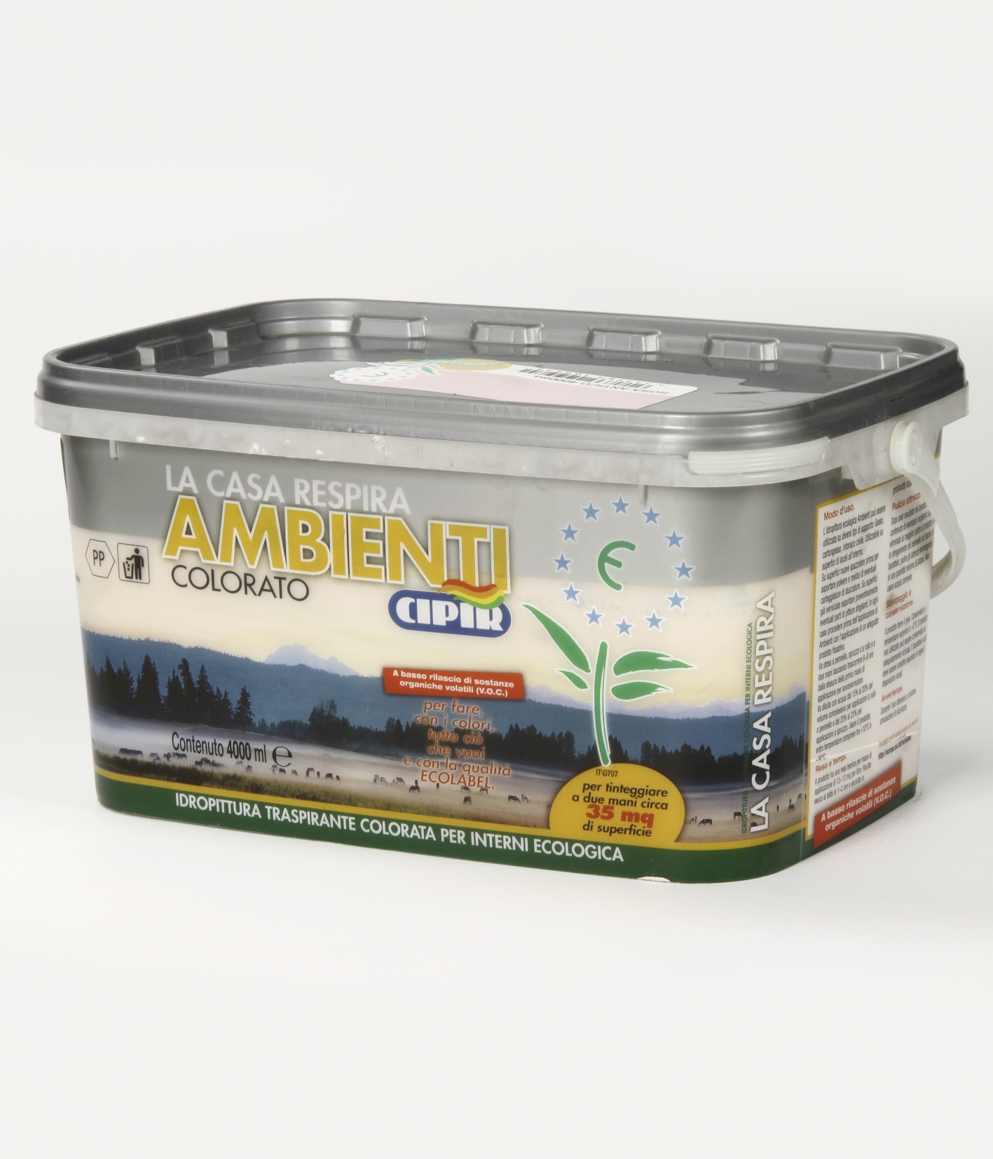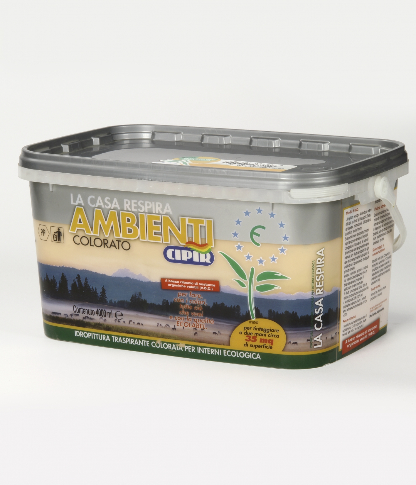 Coloured water-based breathable ecologic paint for interiors.