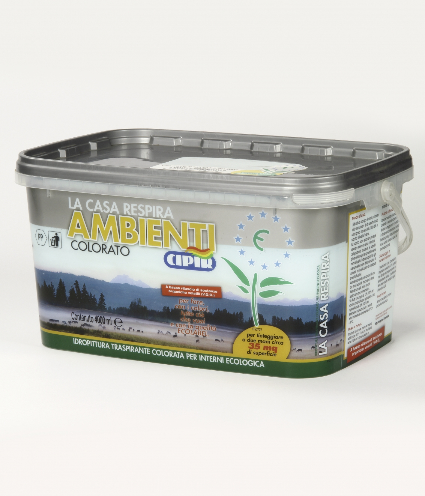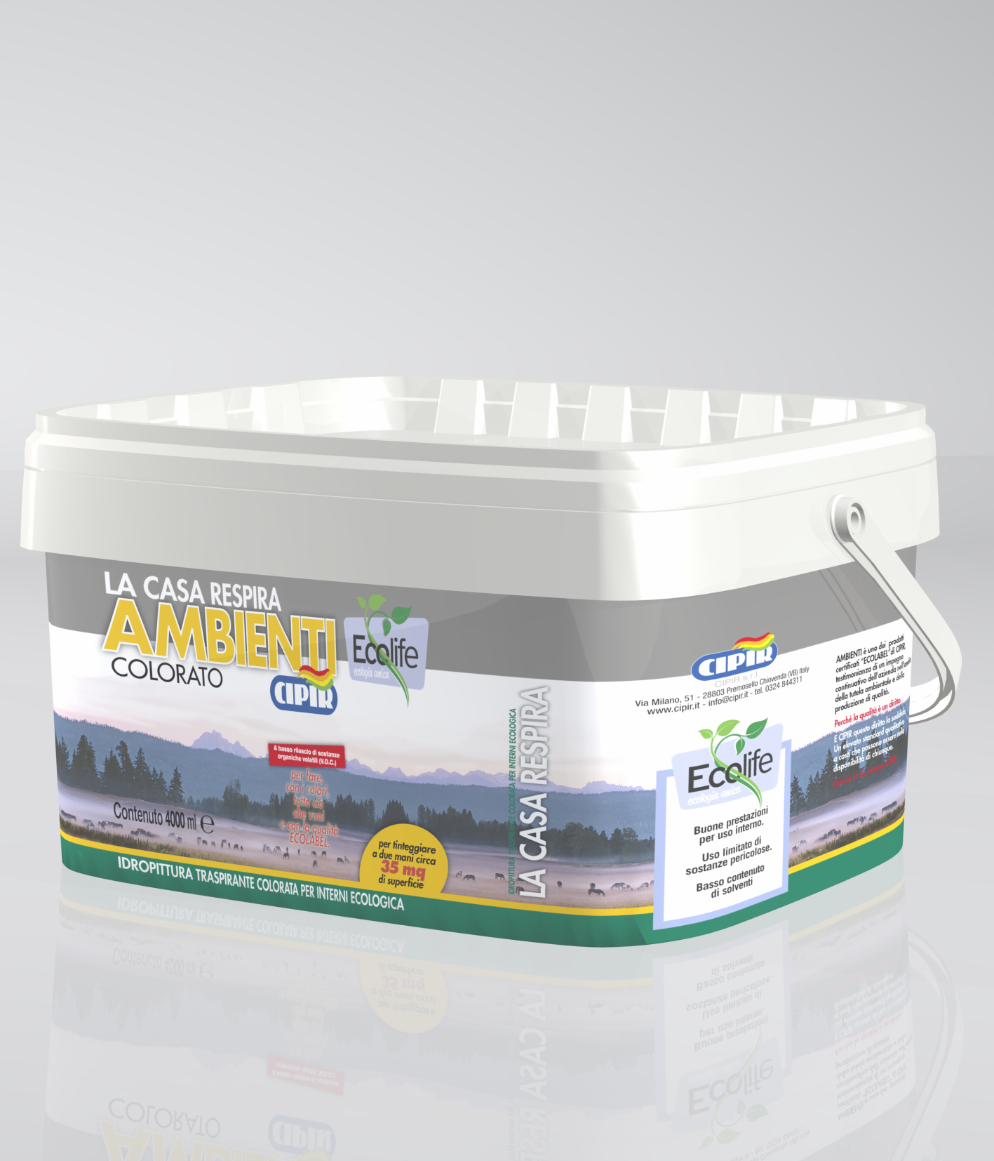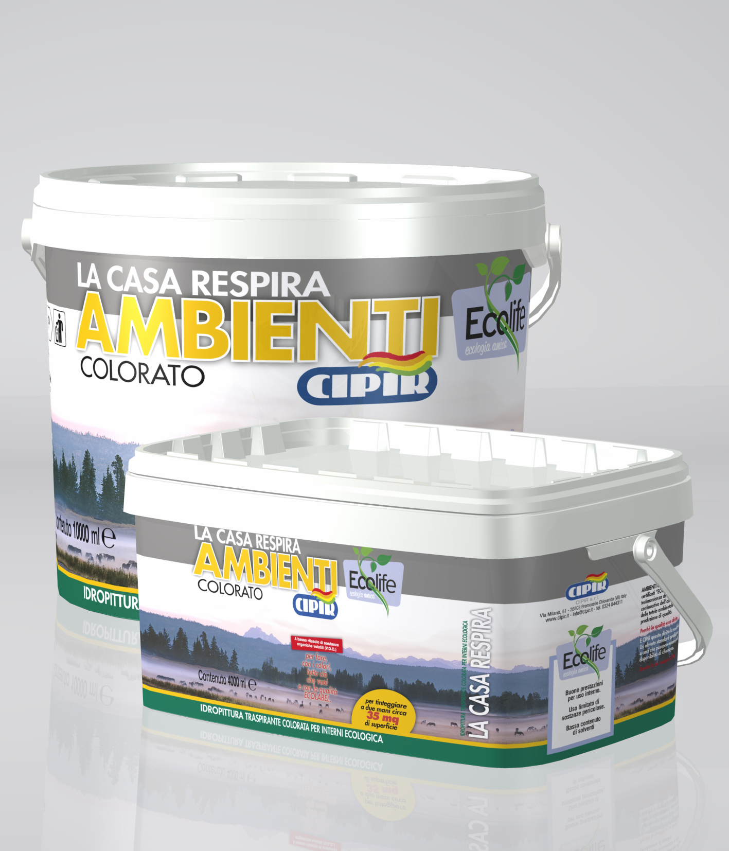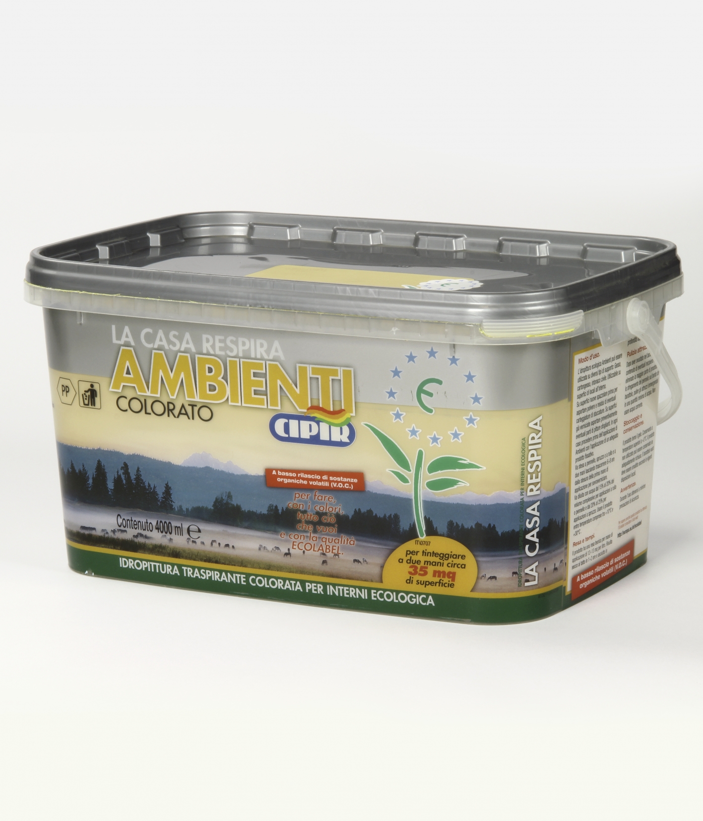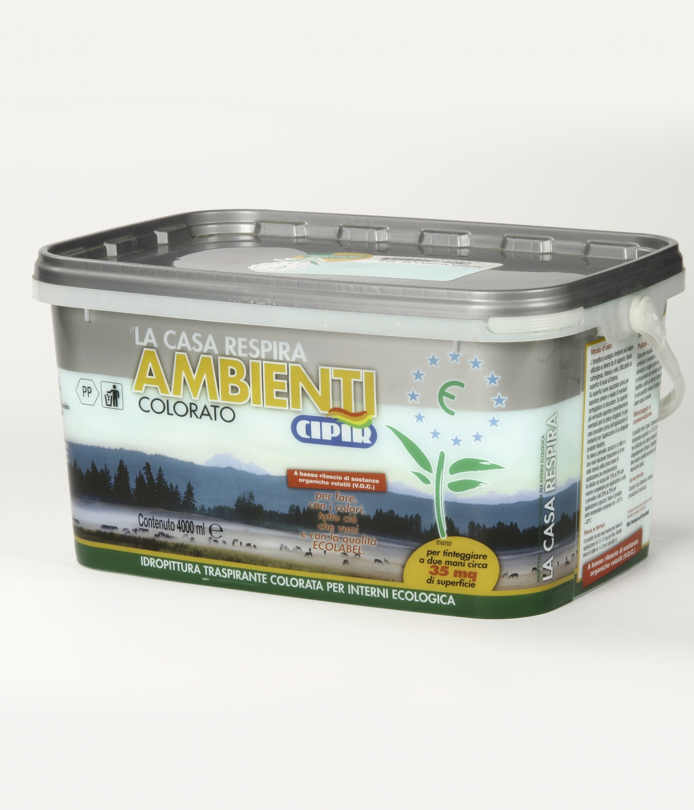 Coloured water-based breathable ecologic paint for interiors.
