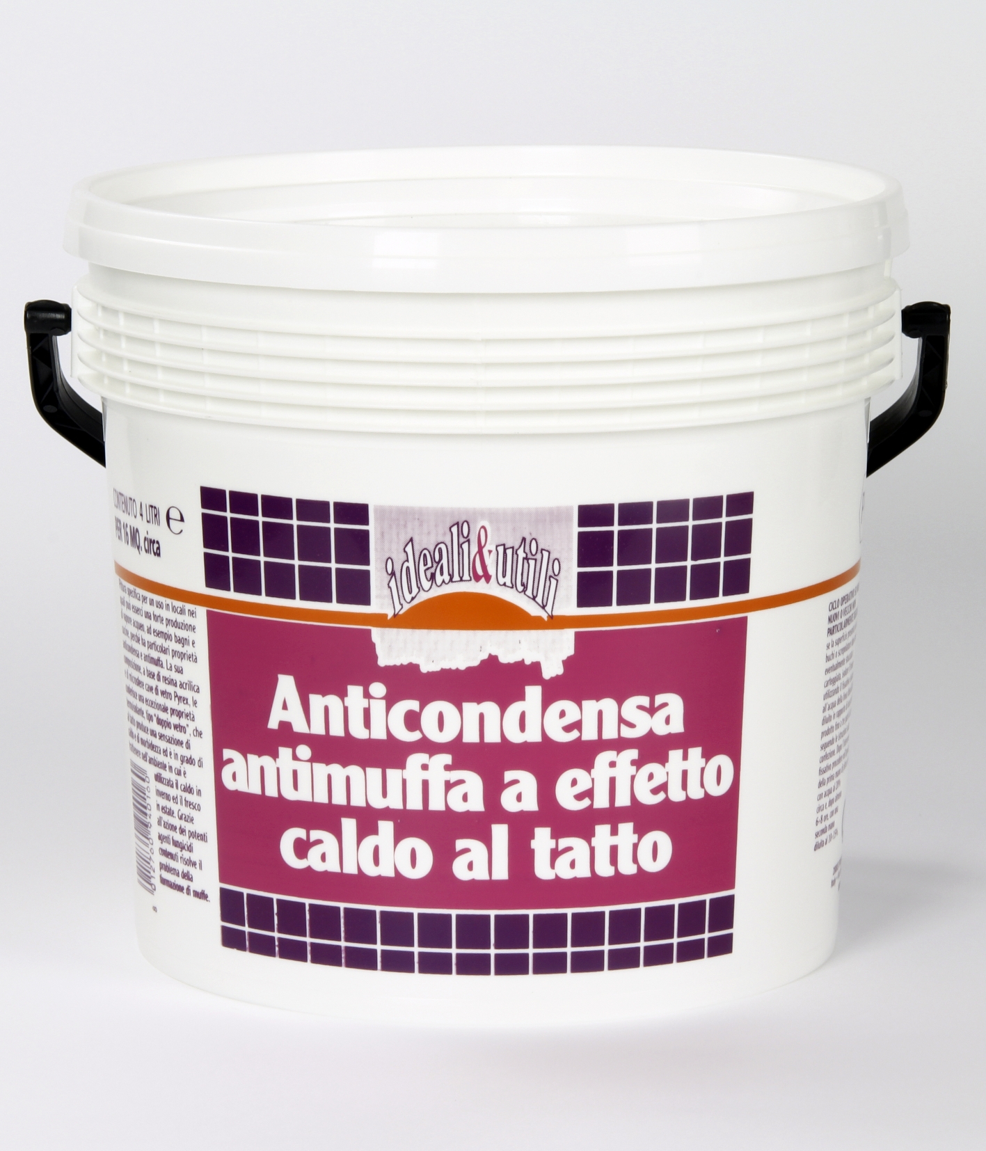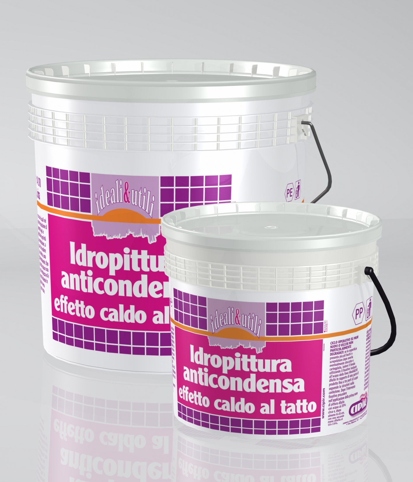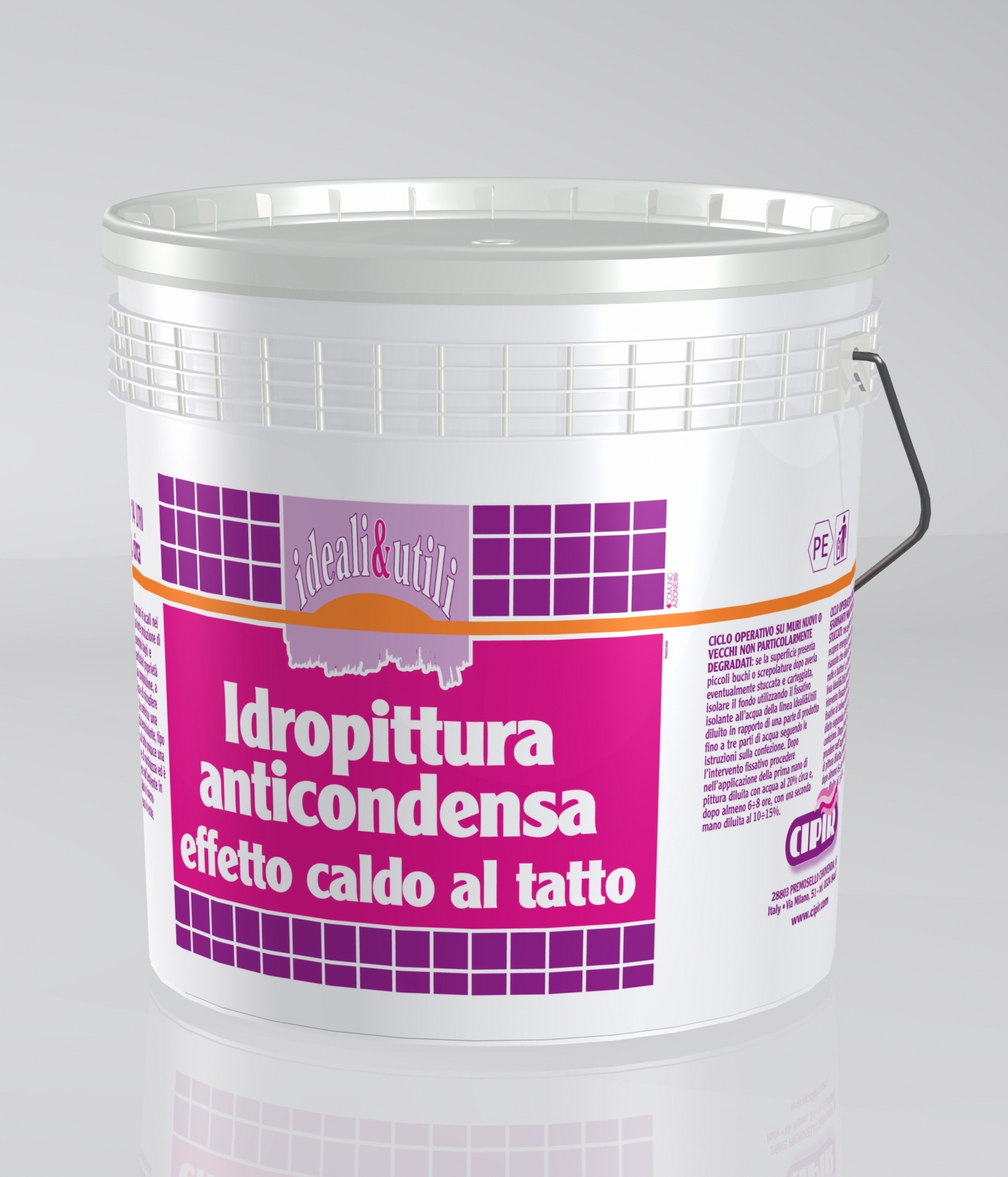 CYCLE: On new substrates: make sure the surface is perfectly dry, clean and the plaster has cured and apply a base coat of ("FIXCIPIR" fixative or "LACCA 140W"). After 24 hours, apply the first coat of Anticondensa ad effetto caldo al tatto. After a further 24 hours, in normal temperature and relative humidity conditions, apply the second coat of the product.