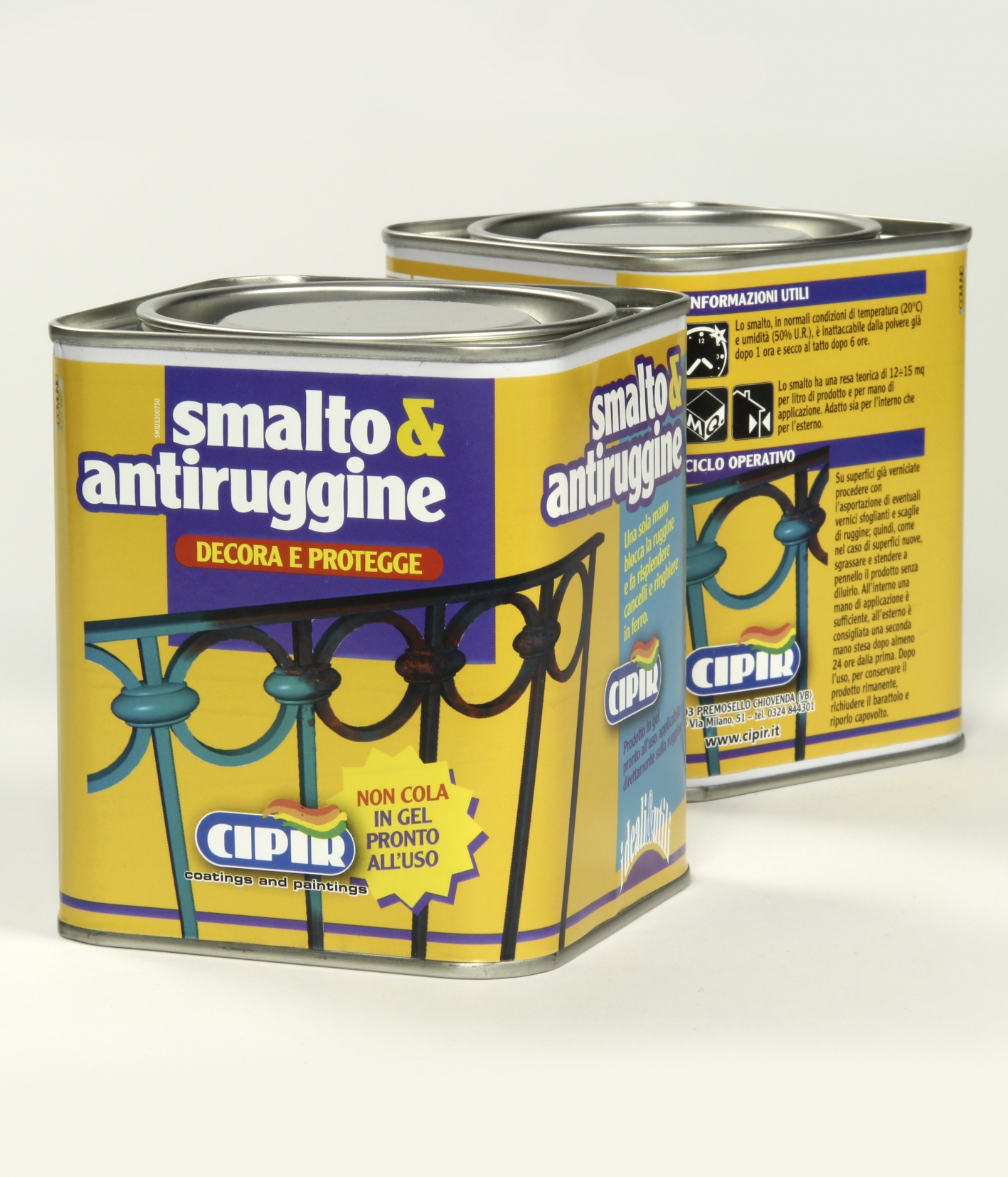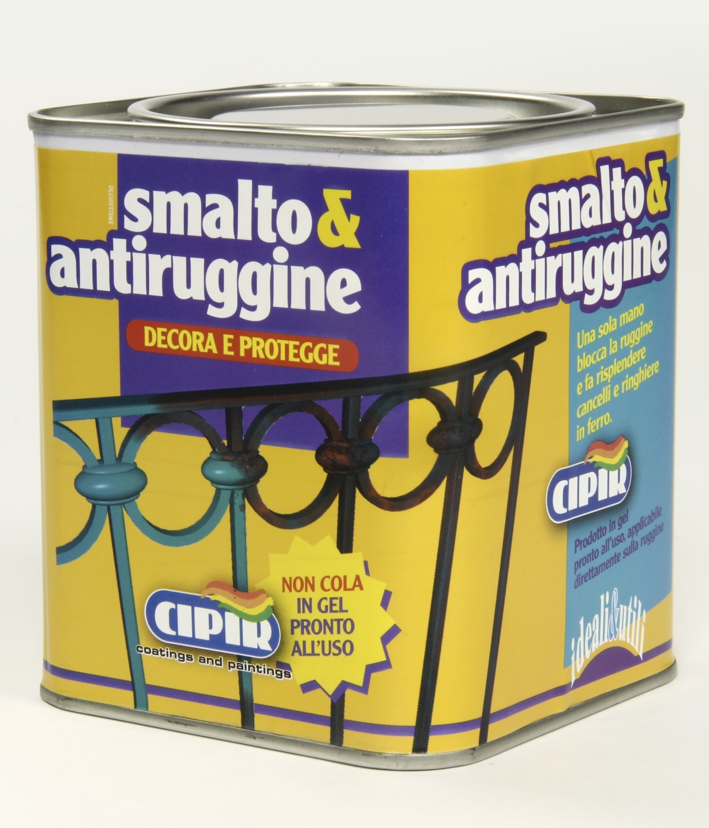 Smalto&antiruggine is a new application and protection concept. Converts passive rust and inhibits corrosion with the anti-rust double function and enamel finish. The protective versatility of the product is the result of the synergic interaction between the rust converters and the non-toxic inhibitor pigments, resins and metal substrate. Smalto&antiruggine does not drip during application and covers edges that are more subject to rusting perfectly, due to its gel structure.