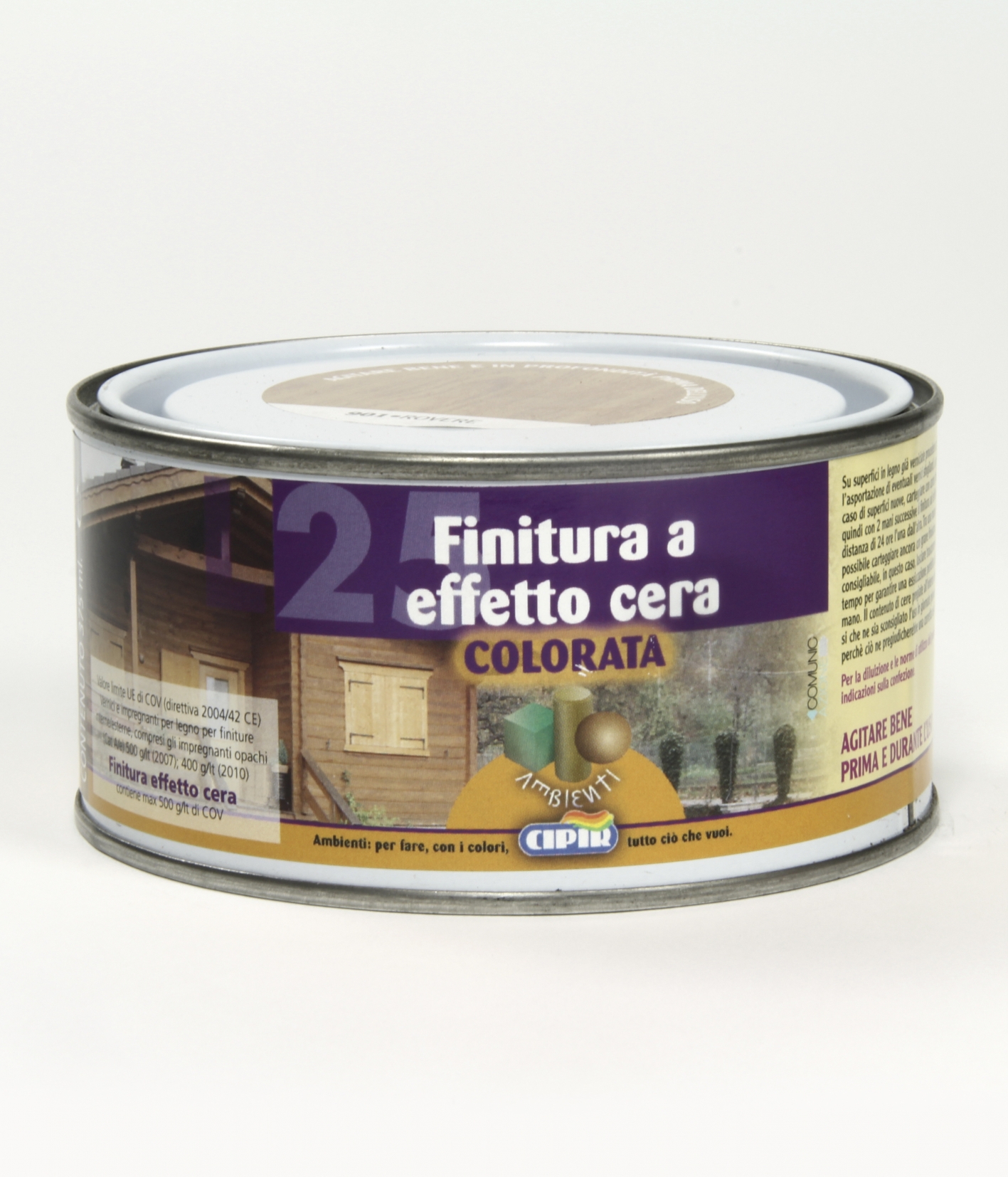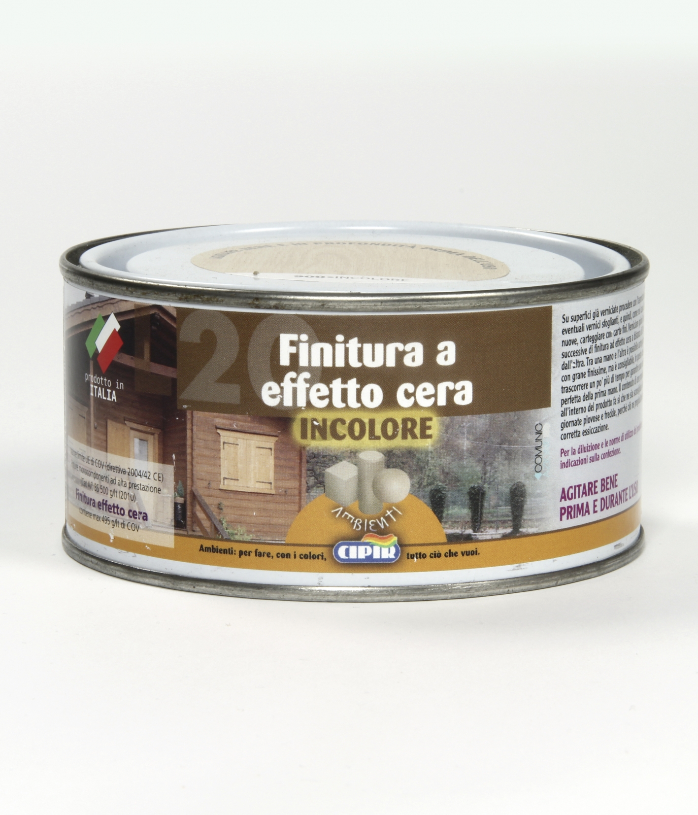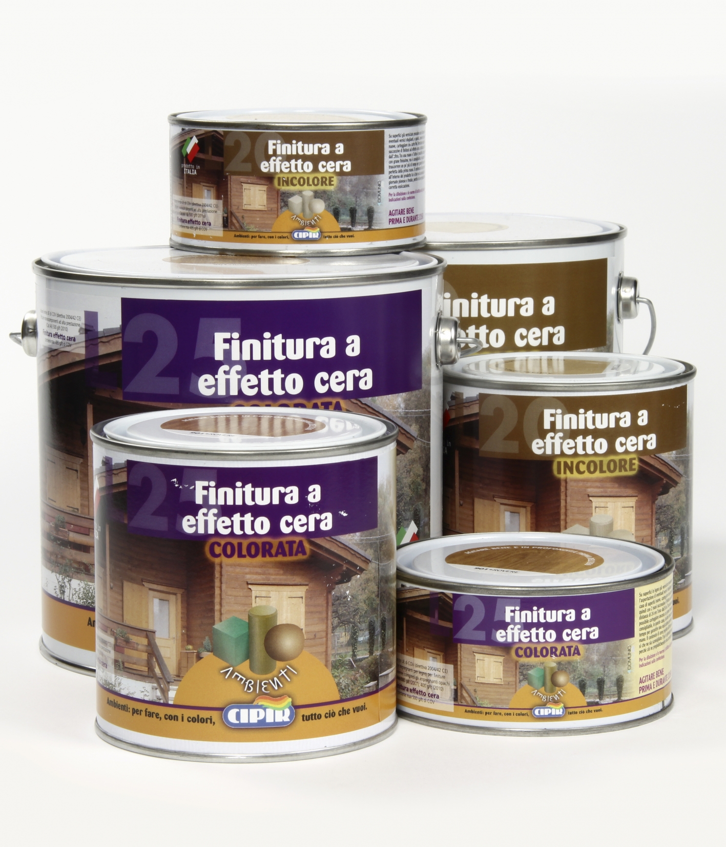 Finitura sintetica trasparente ad "effetto cera" per legno.