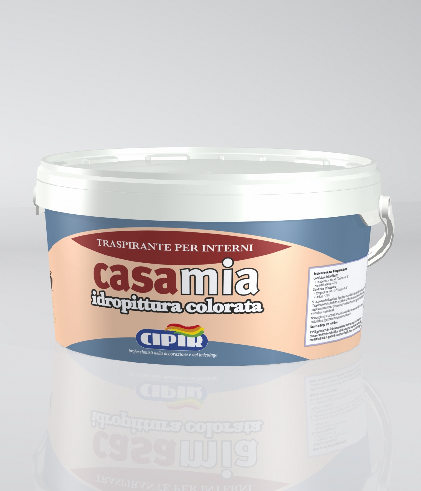 On gypsum and plasterboard: after checking that the surface is dry and clean, as well as appropriately filled and prepared, a first coat of "CIPIRFOND" covering fixative, diluted with maximum 15÷20% water can be applied. After at least 12÷18 hours, the first coat of Casamia - traspirante can be applied. After a further 18 hours, the application can be completed with the second coat of Casamia - traspirante.