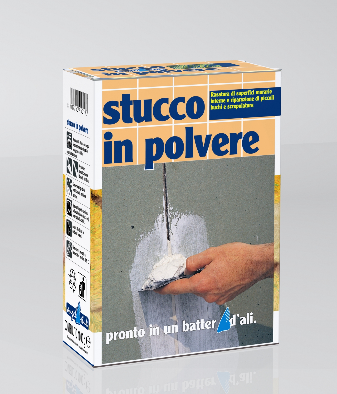 Stucco in polvere per interno formulato con gesso alabastrino, carbonato di calcio, caolini ed adddittivi specifici.Perfettamente carteggiabile a secco.