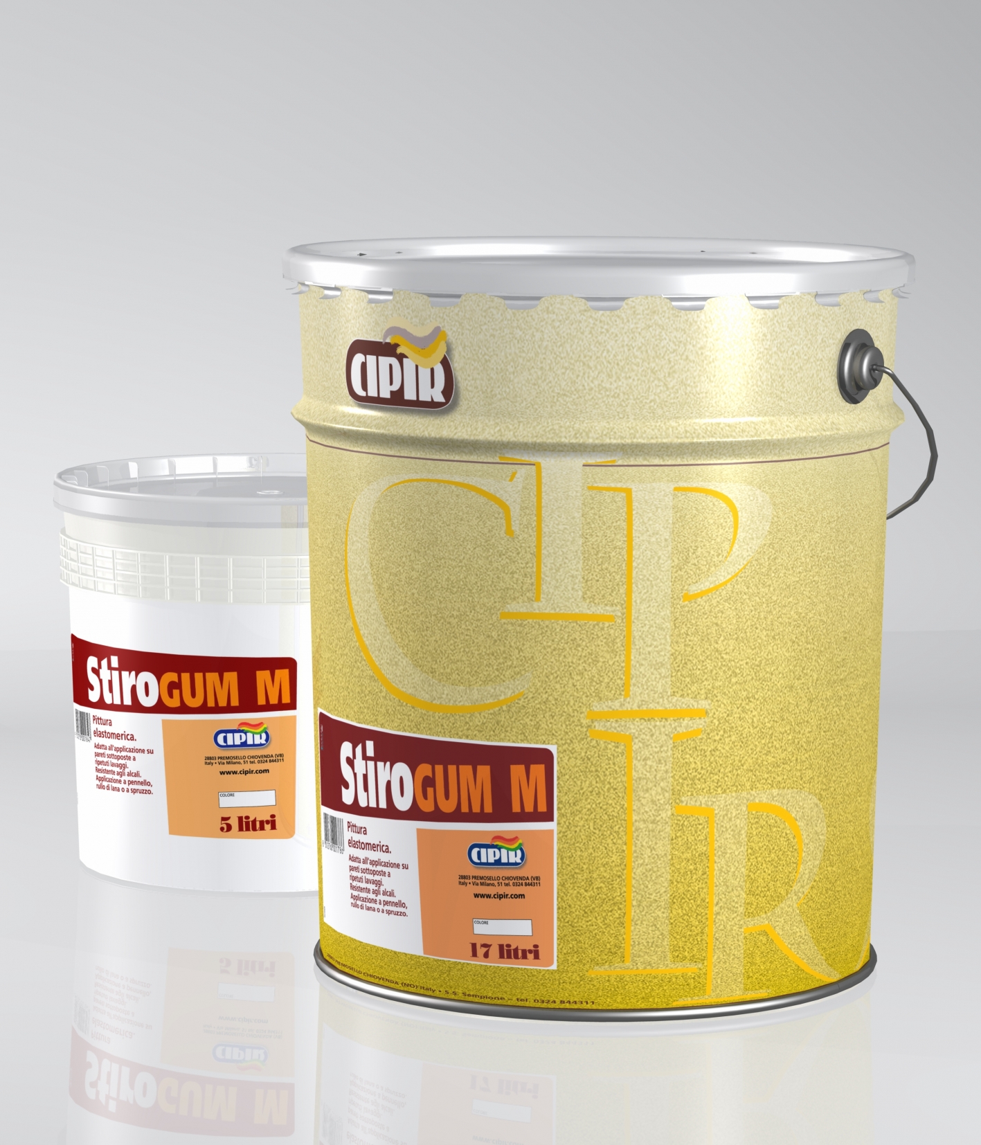 CICLO: Supporto nuovo: accertarsi che l'intonaco abbia raggiunto la stagionatura di almeno 28 giorni, controllare che la superficie sia asciutta, pulita e senza presenza di polvere o parti poco consistenti. Applicare quindi una mano di fissativo acrilico "FIXCIPIR" oppure di fissativo a micro particelle ad alta penetrazione "LACCA 140W". Trascorse almeno 18 ore, procedere con le due mani di StiroGum M ad una distanza di almeno 24 ore una dall'altra.