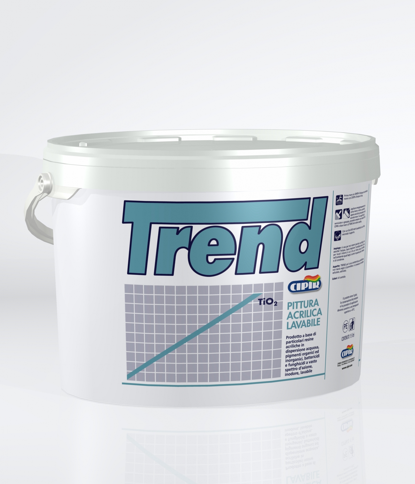 Pittura stiroloacrilica traspirante per interno di aspetto opaco, eccellente punto di bianco ed ottima copertura, formulata con resine, pigmenti e cariche severamente selezionate e collaudate. Ottima la copertura ed una elevatissima resa in fase applicativa. Trend possiede ottime caratteristiche di lavabilità.