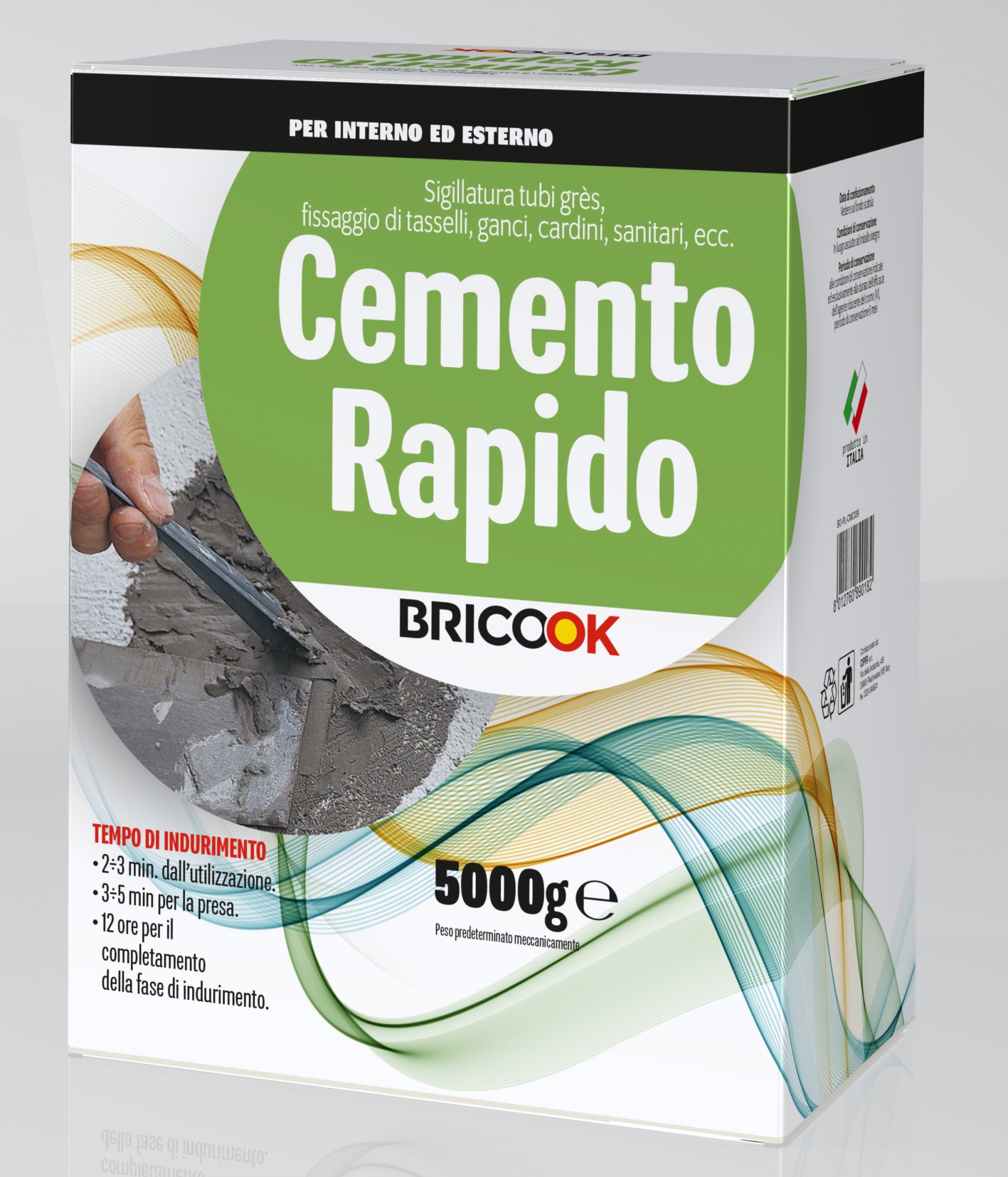 Tempo medio di presa (a 22°C e umidità relativa 60%) 2÷4 minuti.