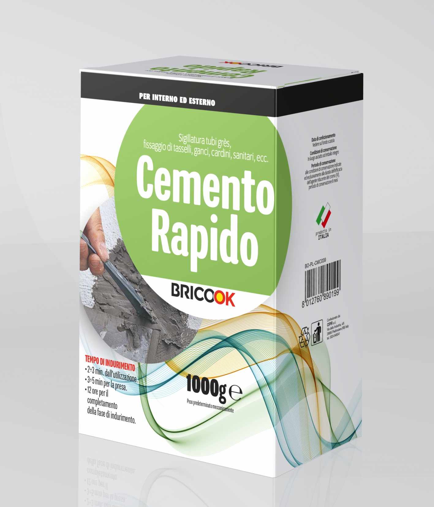 Legante idraulico composto da cementi speciali a presa rapida e fini sabbie selezionate.