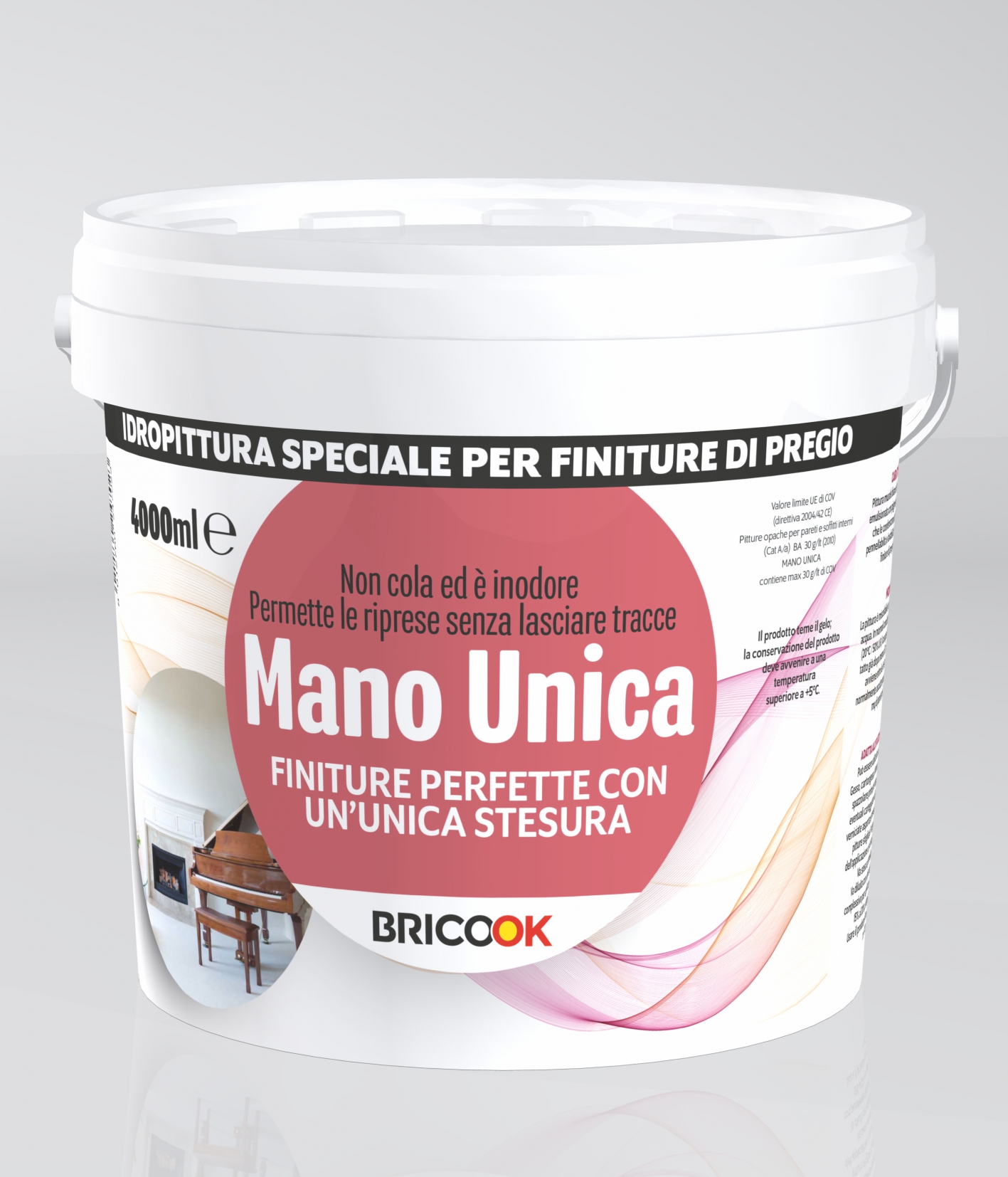 CICLO: Su supporti nuovi: assicurarsi che la superficie da pitturare sia perfettamente asciutta, pulita e stagionata almeno per un periodo di 28 giorni in normali condizioni di temperatura ed umidità relativa. Procedere con una mano di fissativo "FIXCIPIR", dopo almeno 6 ore, applicare la prima mano di Mano unica. Trascorse 24 ore si potrà applicare la seconda mano di prodotto.