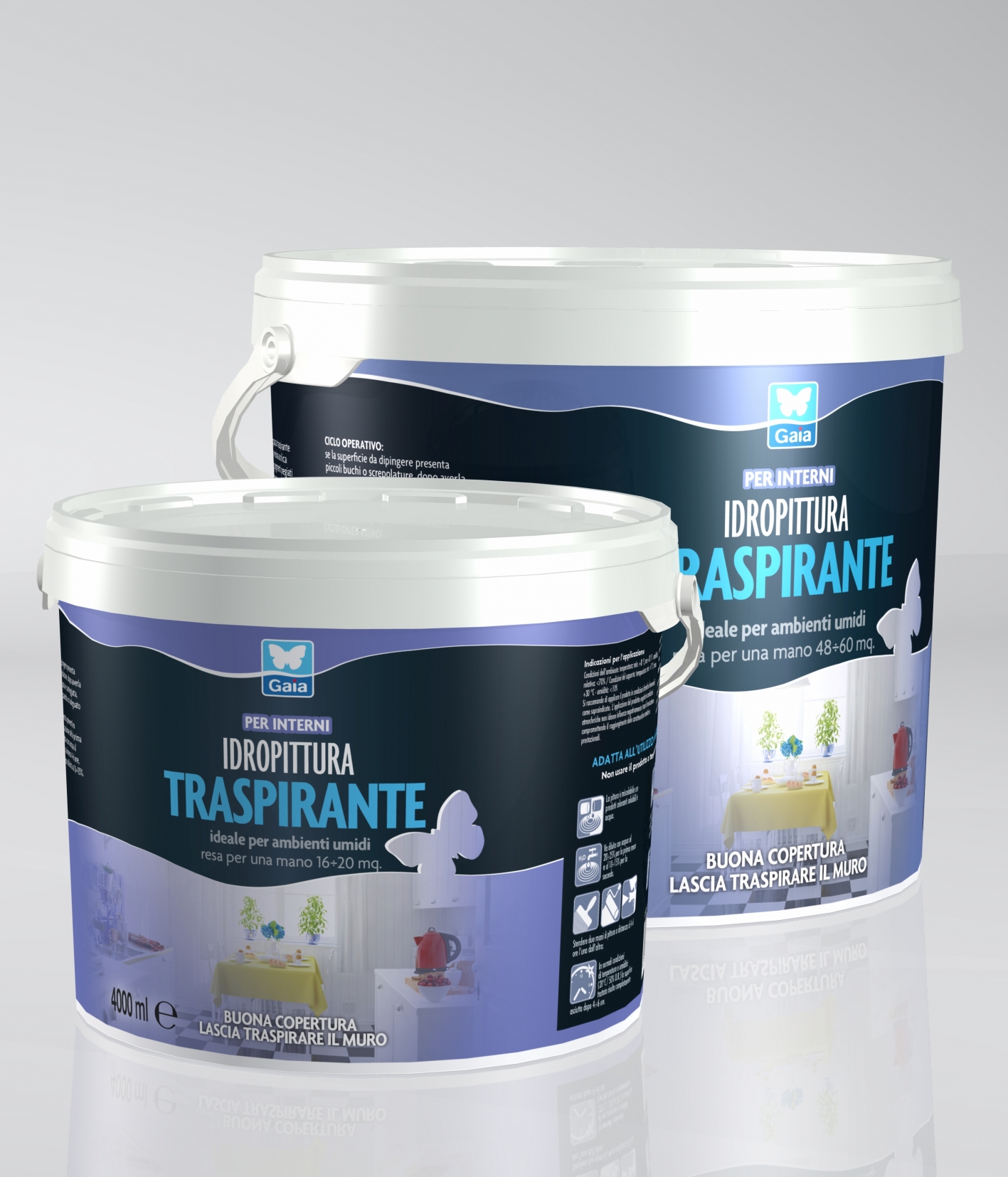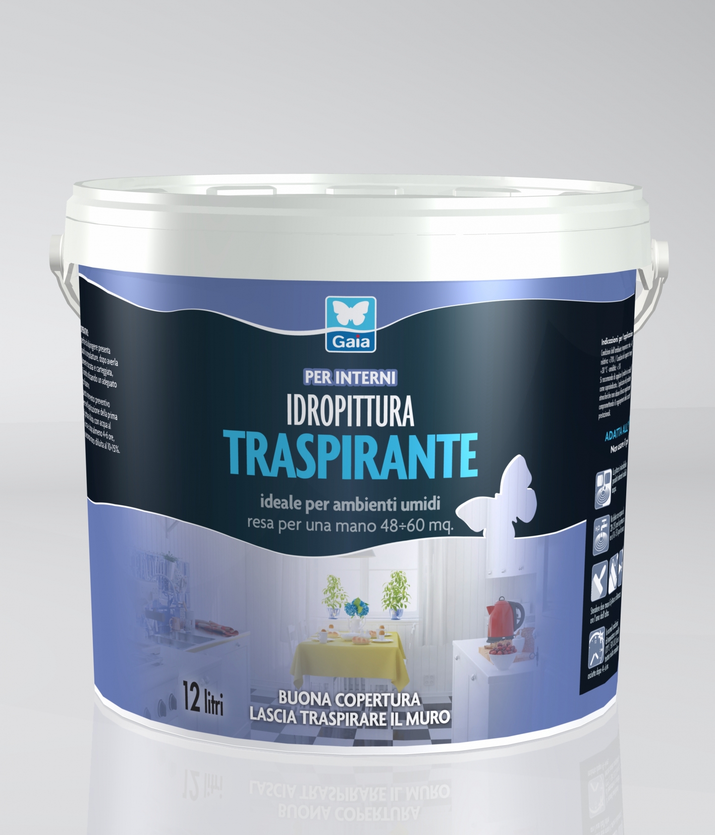 Pittura per interno traspirante a base di resine in emulsione acquosa,biossido di titanio cariche fini e additivi antibatterici.