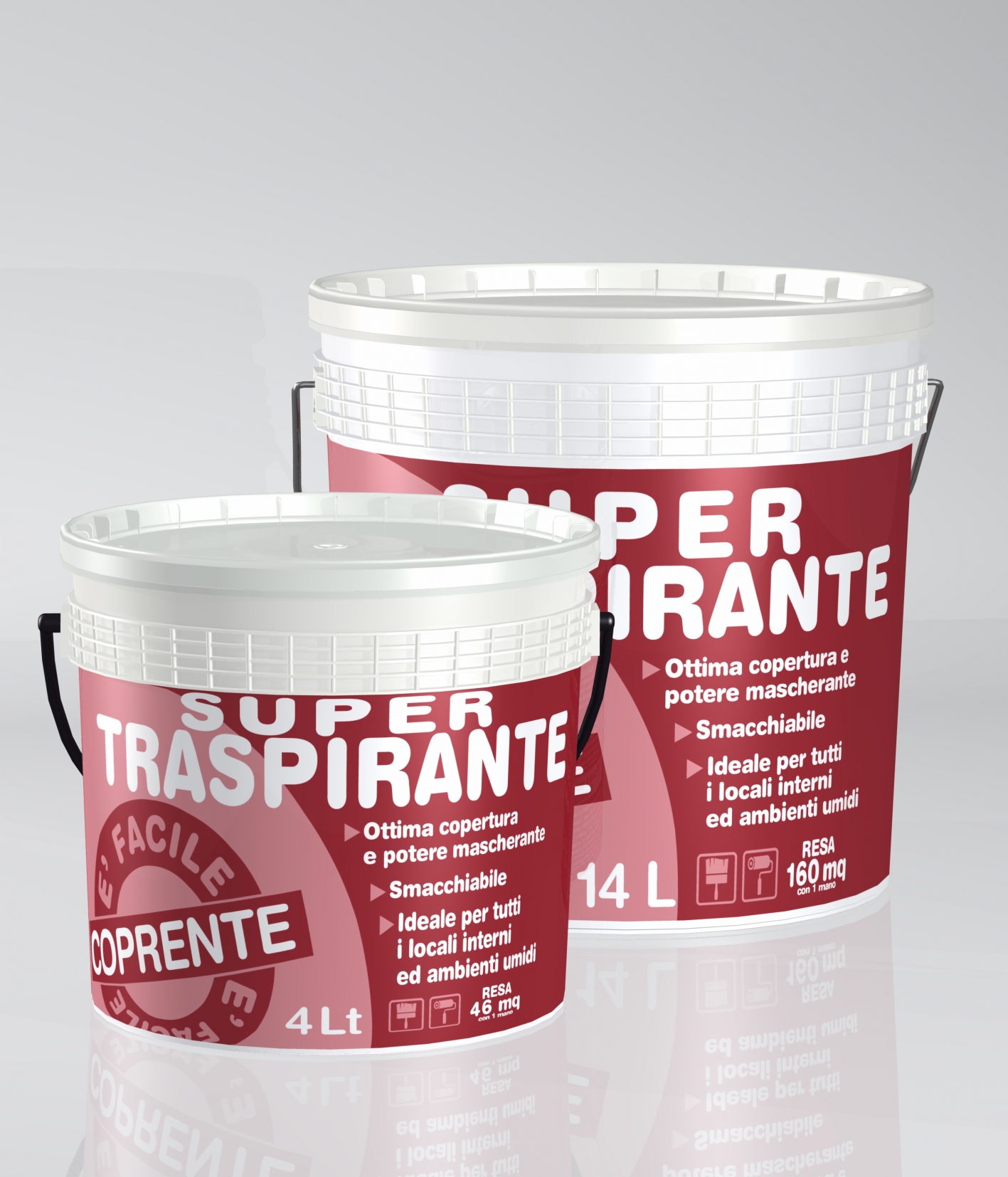 Once the base preparation is concluded, after at least 12 hours the first coat of Supertraspirante «è facile» can be applied, ad after a further 18 hours, the second one.