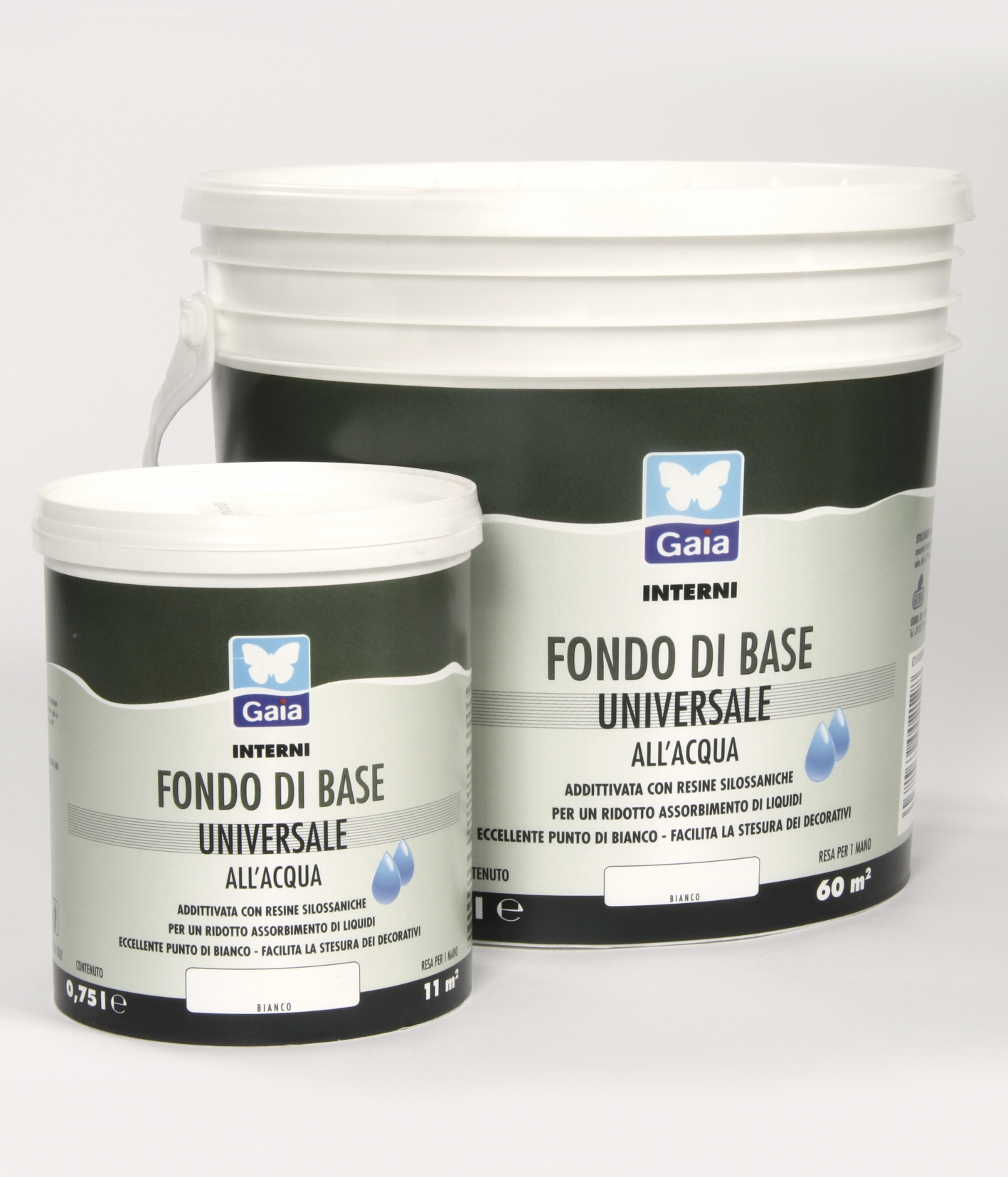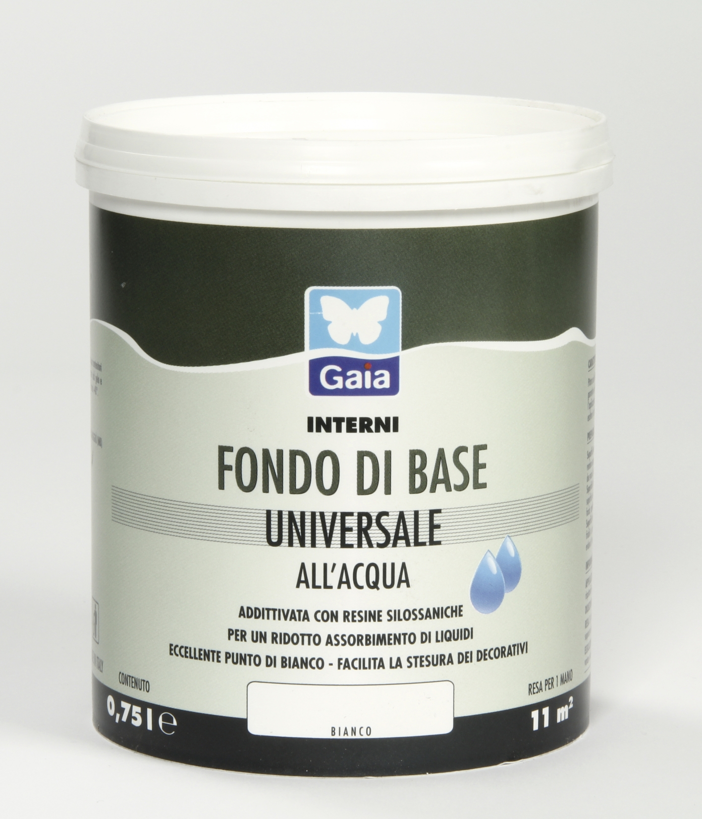 Paint with a slightly silky effect, formulated with: siloxane resin to adjust the absorption of the substrates and to ensure the excellent workability of decorative products; fine silica powder to facilitate the application of the decorative colours and paste products; titanium to confer excellent coverage and white balance.