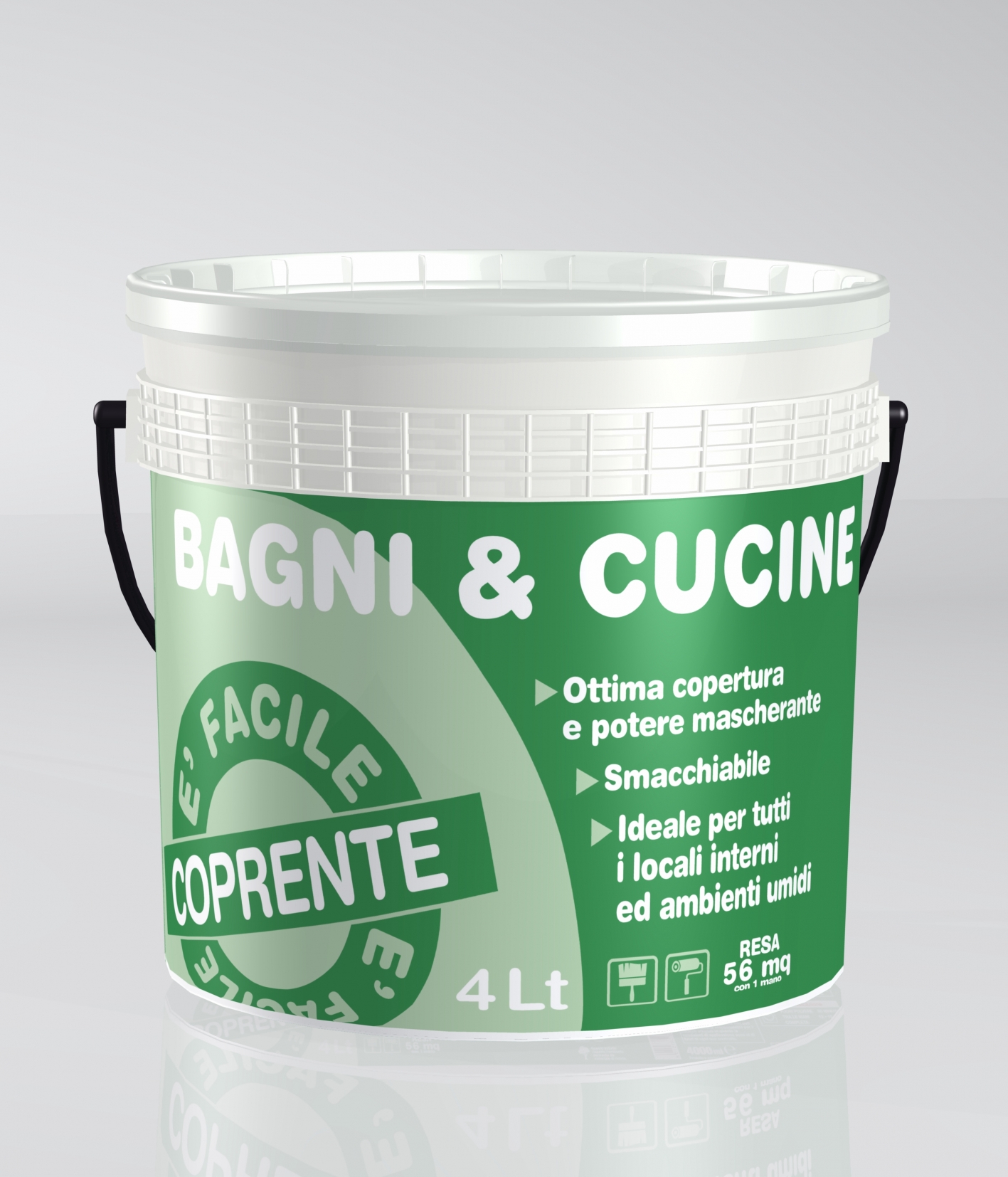 CYCLE: On new walls that have never been painted: make sure the surface is perfectly clean and dry; apply a coat of "FIXCIPIR" fixative, diluted with water in a ratio of 1 part of fixative with 4 parts water. After at least 12 hours, the first coat of Bagni&cucine can be applied.