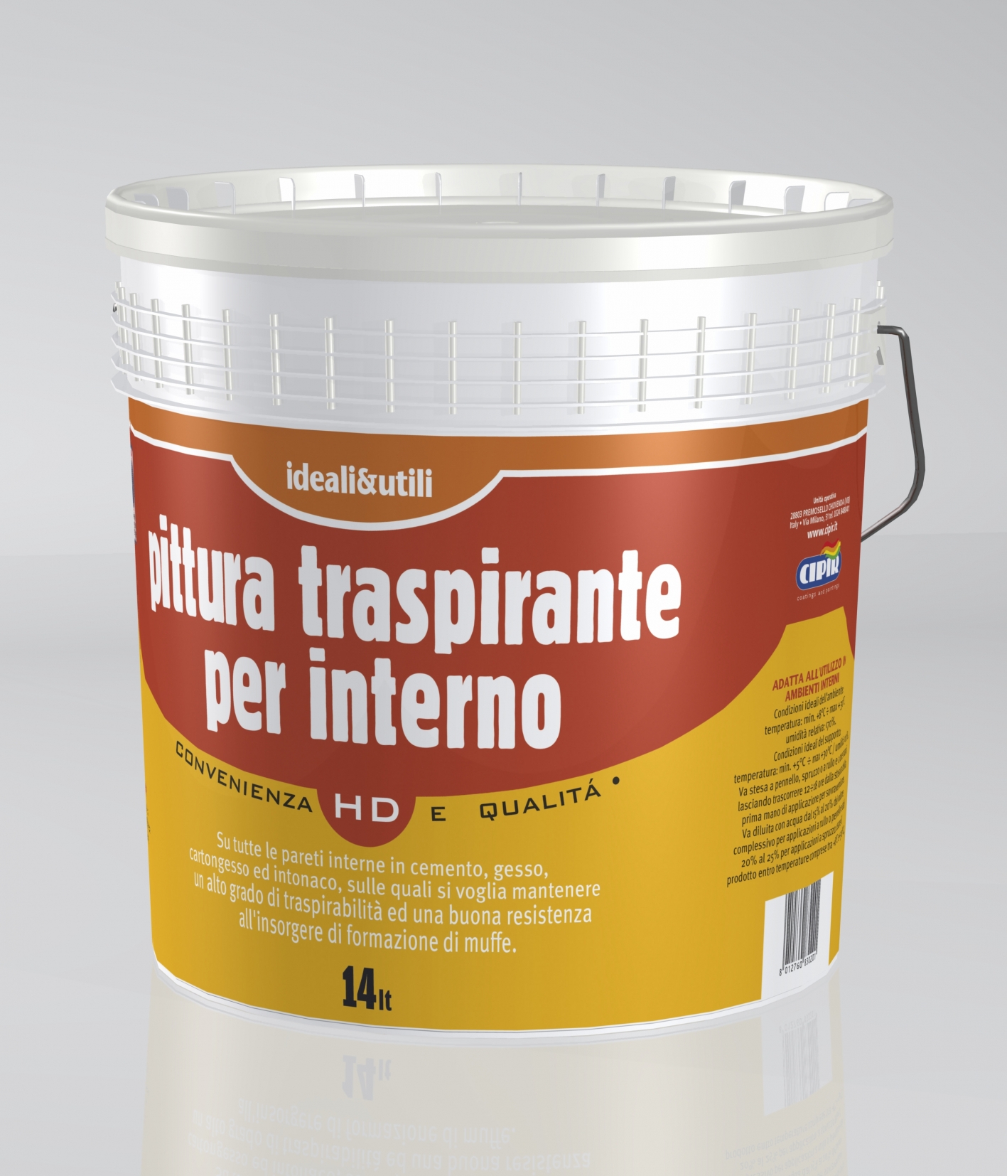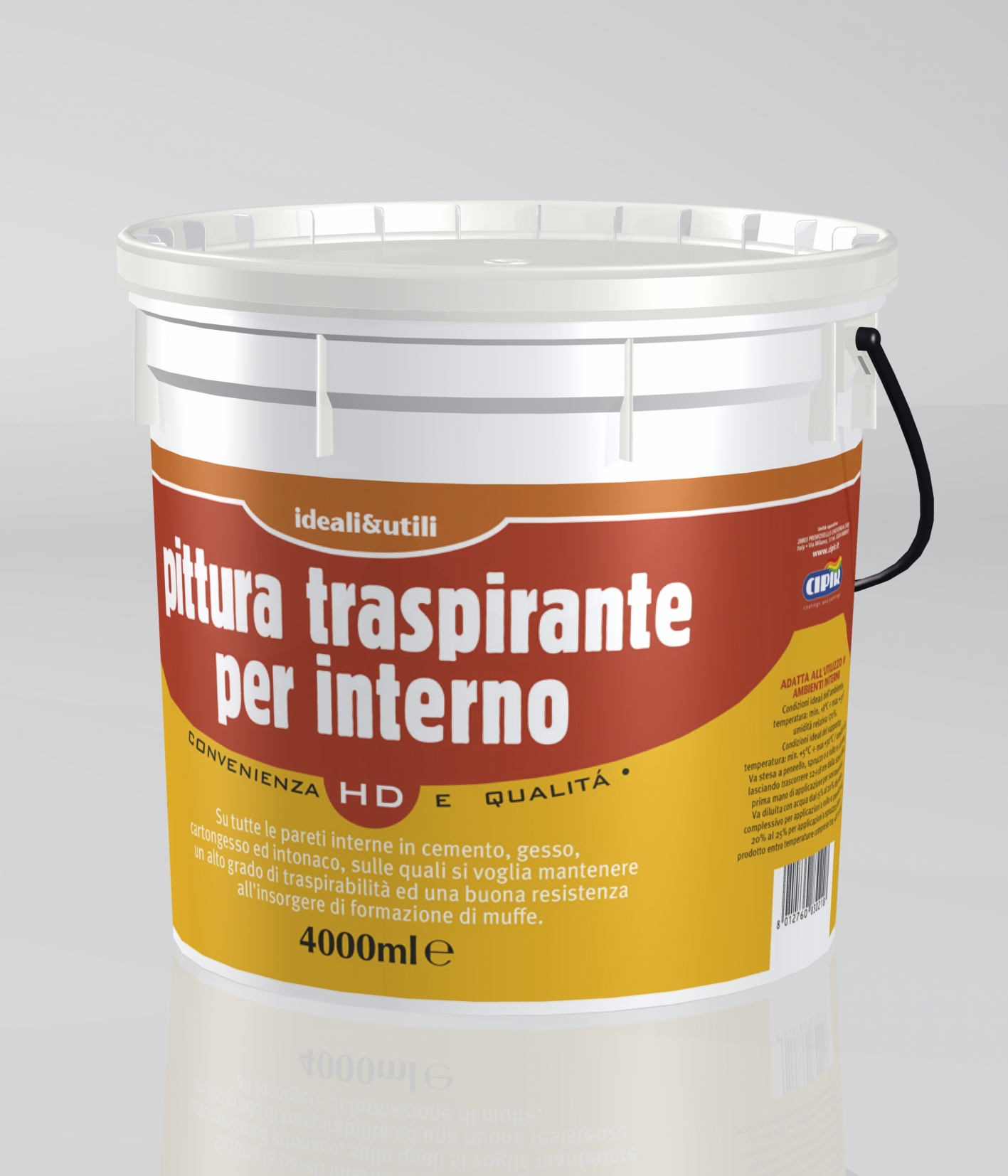 Acrylic resin based breathable paint for interiors in aqueous emulsion, fine crystalline and amorphous fillers, rutile titanium dioxide and anti-bacterial components.