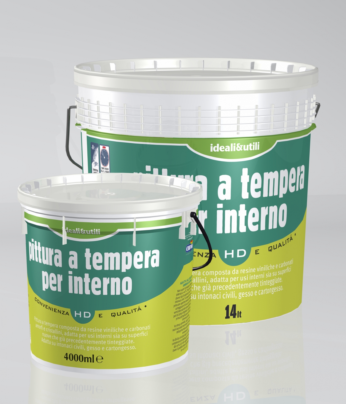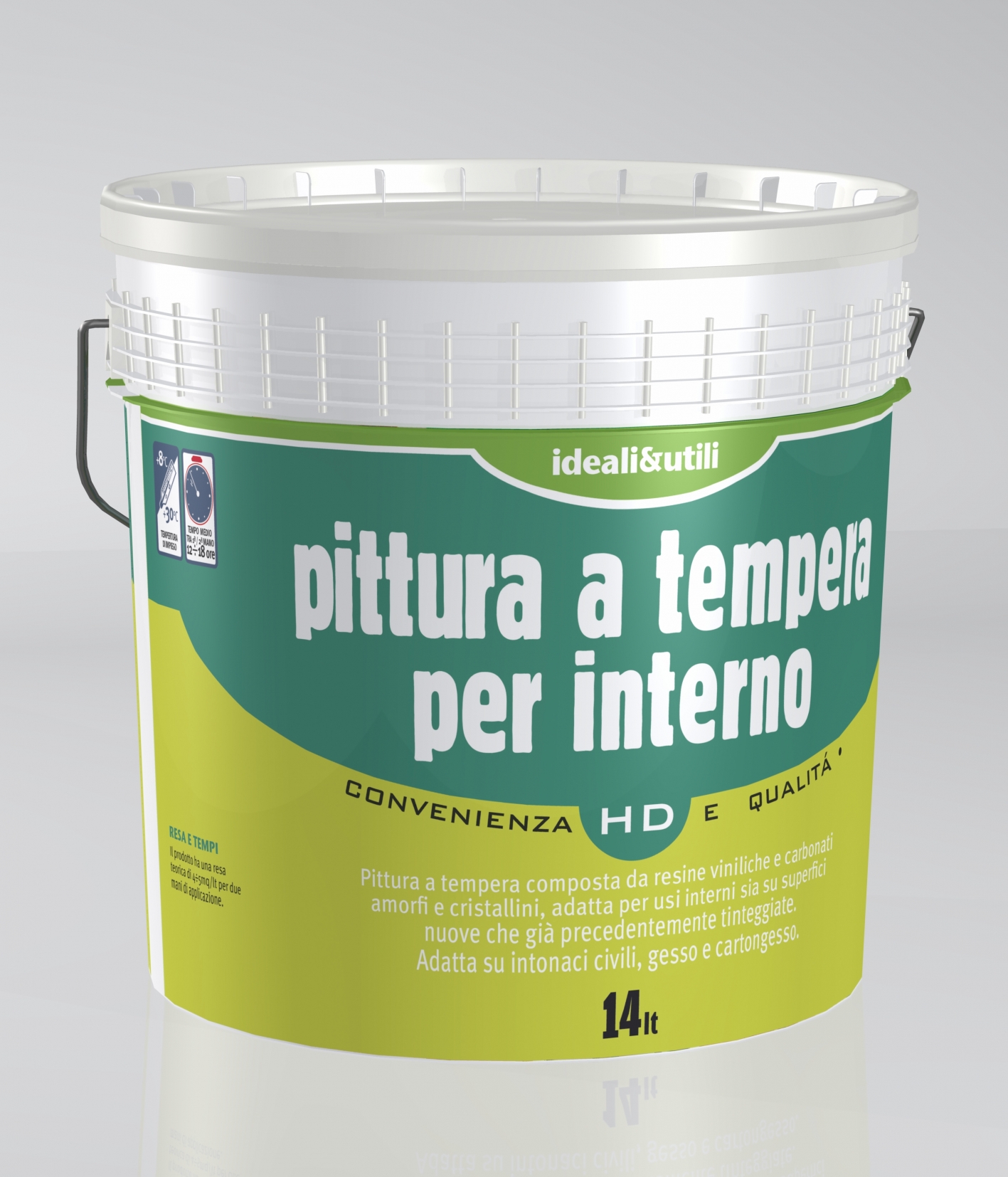 Pittura a tempera composta da resine viniliche e carbonati amorfi e cristallini, adatta per usi interni sia su superfici nuove che già precedentemente tinteggiate.