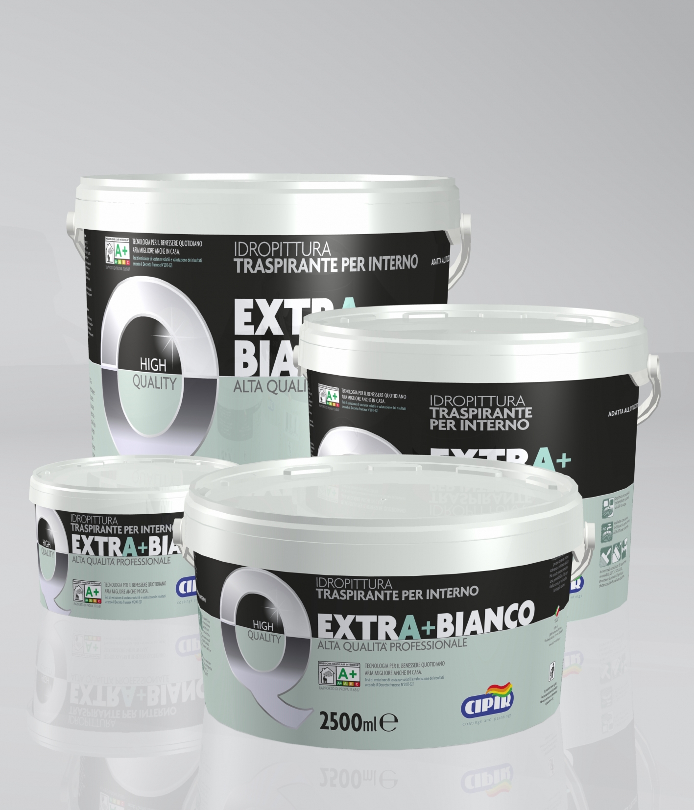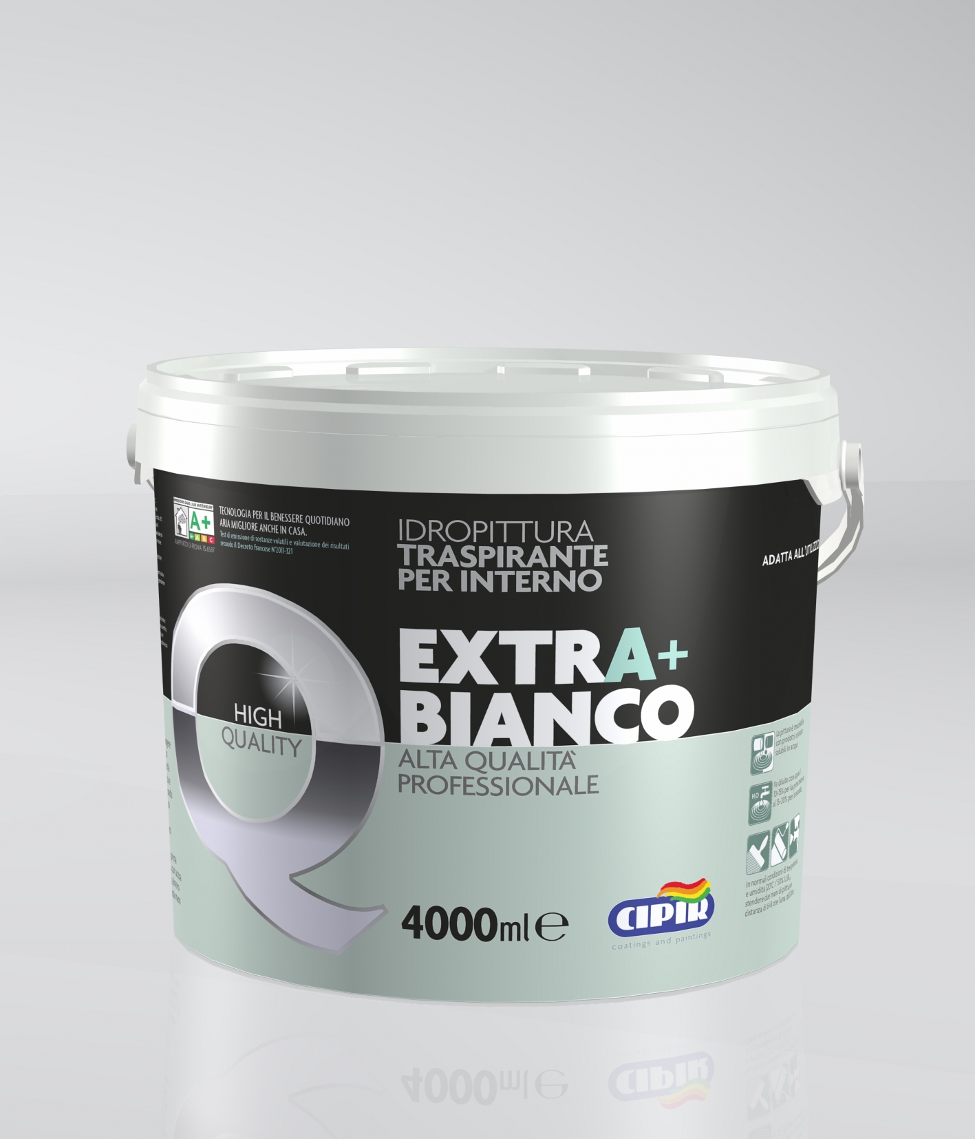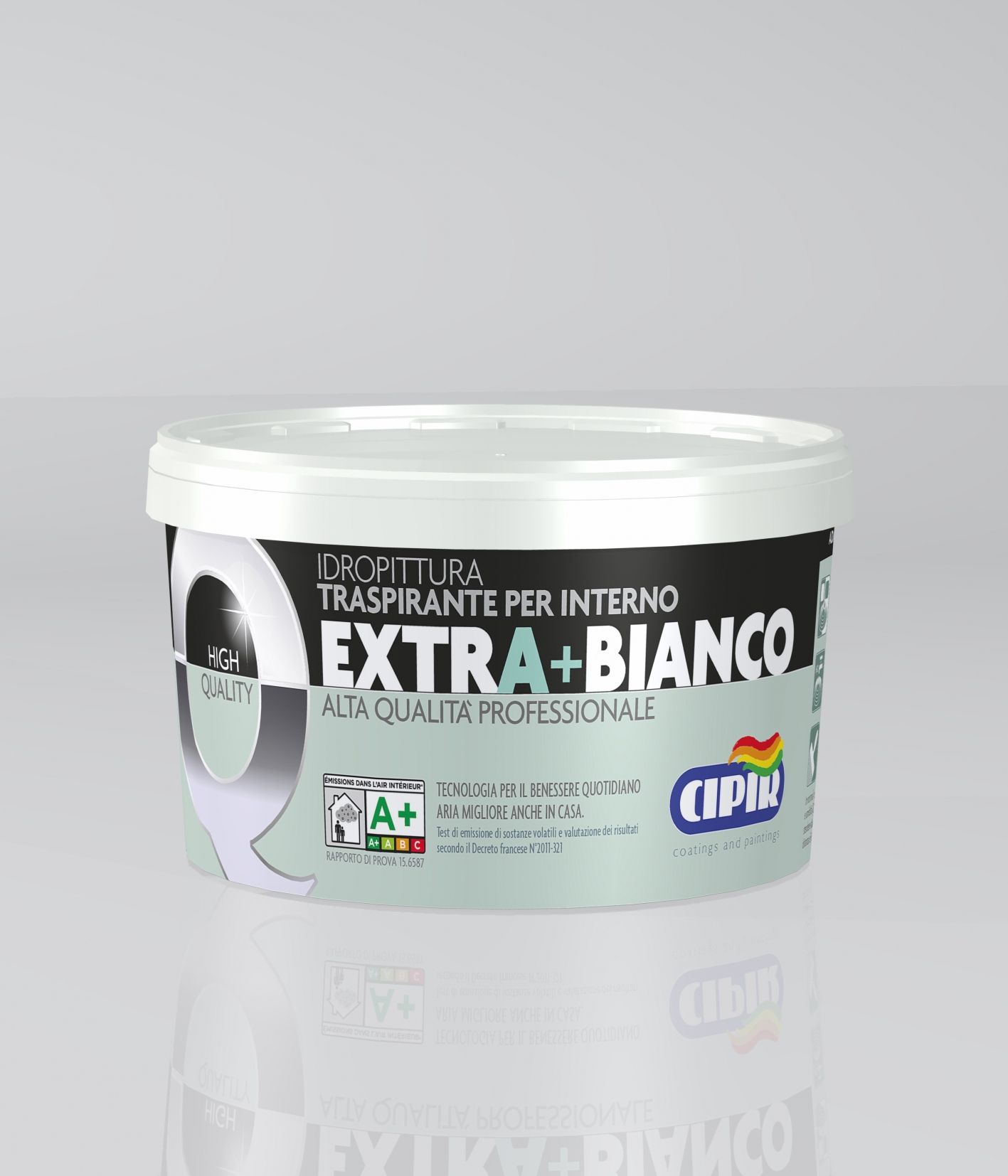 On gypsum and plasterboard: after checking that the surface is dry and clean, as well as appropriately filled and prepared, a first coat of "CIPIRFOND" covering fixative, diluted with maximum 15÷20% water can be applied. After at least 12÷18 hours, the first coat of Pittura traspirante ExtrA+Bianco can be applied. After a further 18 hours, the application can be completed with the second coat of Pittura traspirante ExtrA+Bianco.