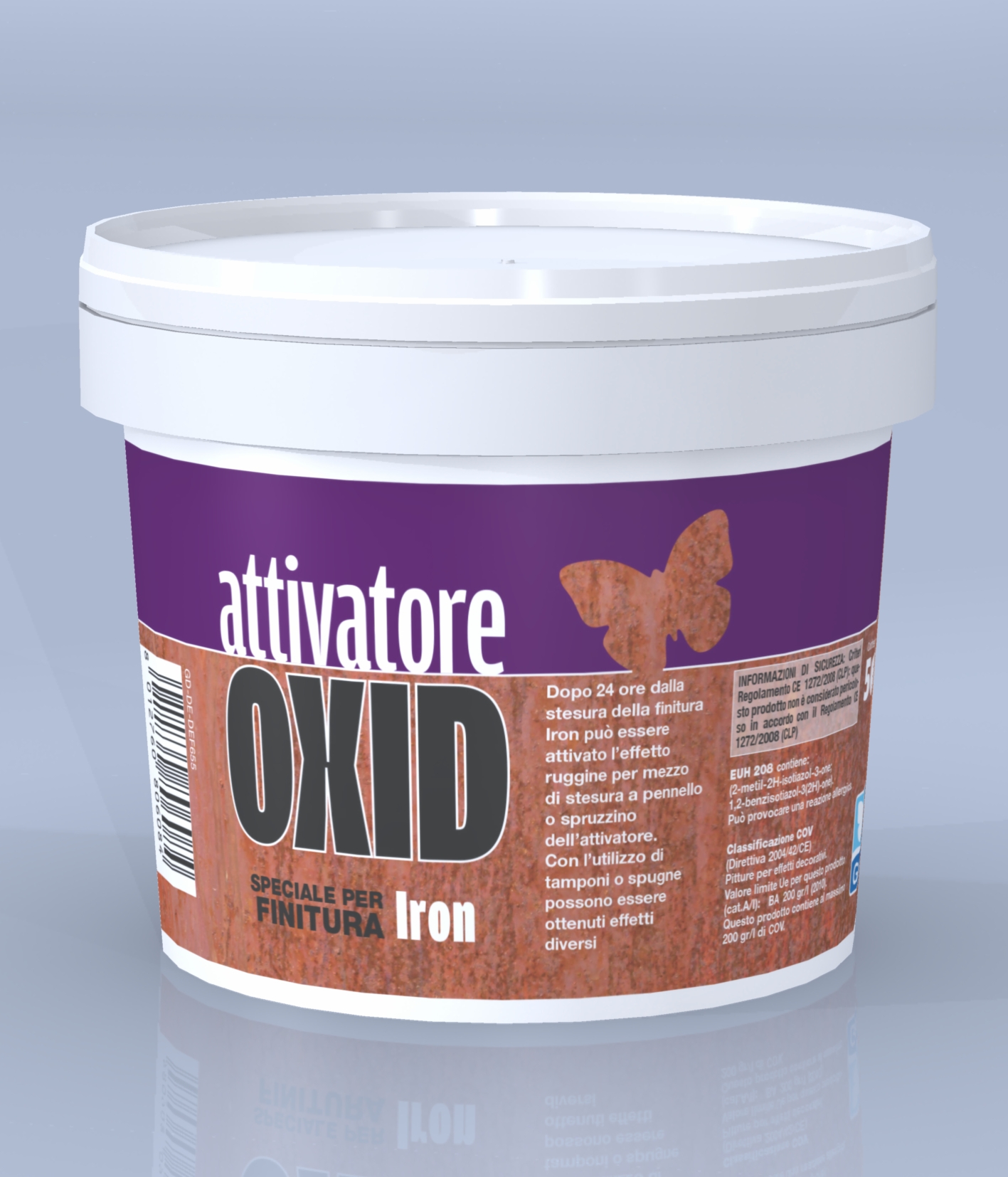VOLATILE ORGANIC COMPOUNDS EU limit value VOC (Directive 2004/42 EC) Pitture per effetti decorativi (Cat A/l) BA 200 gr/lt (2013) Oxid - Attivatore Iron max contains 200 gr/lt di VOC