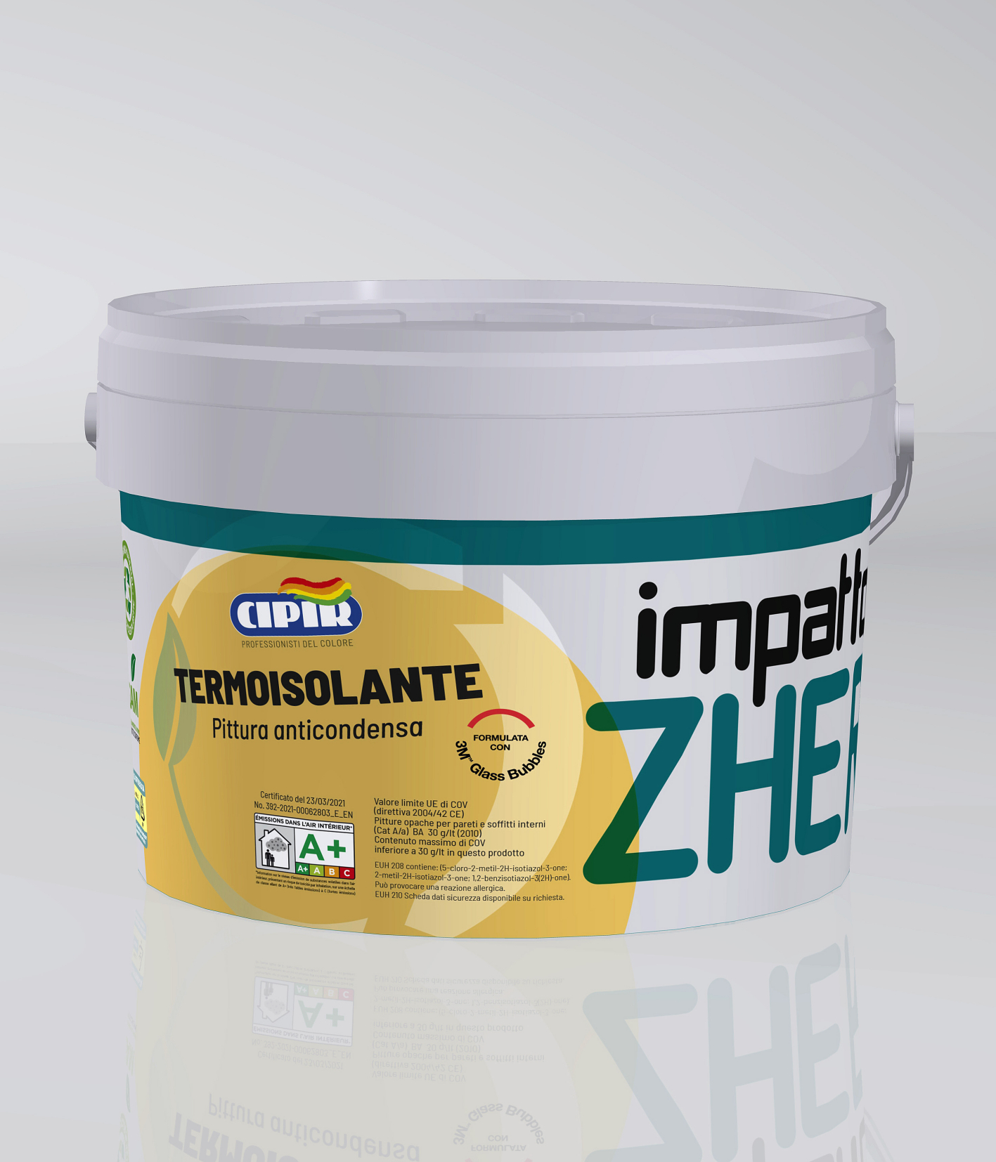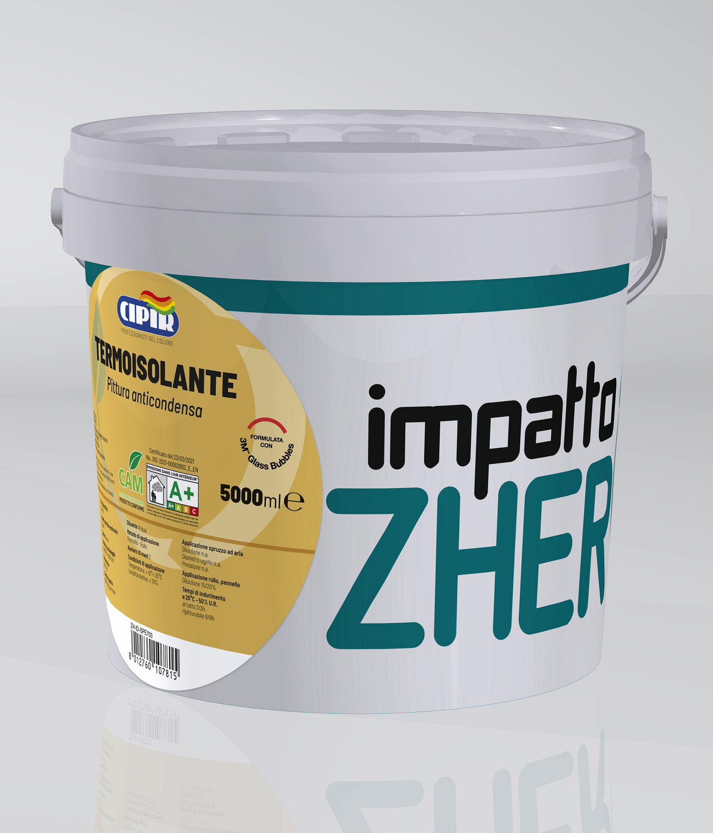 Pittura acrilica addizionata di microsfere cave di vetro che le conferiscono proprietà termoisolanti. Certificata A+ / Conforme CAM