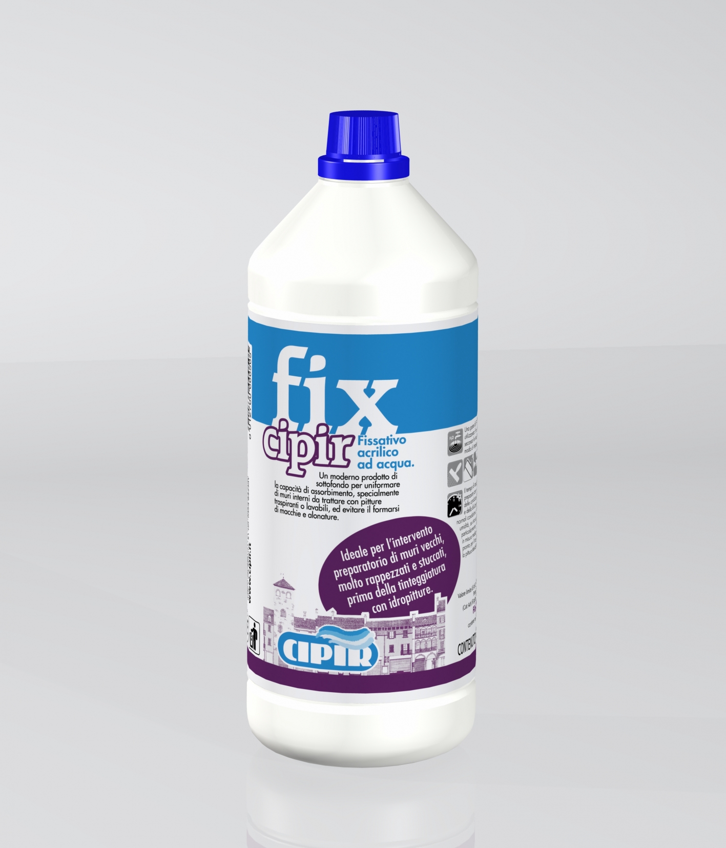 CYCLE: New interior walls: clean the surface well, make sure it is perfectly dry, fill any cracks and/or small holes with "MASTICFAS" or with "STUCCO IN PASTA". After around 1÷2 hours apply FixCipir, in the dilution required by the substrate absorption capacity.